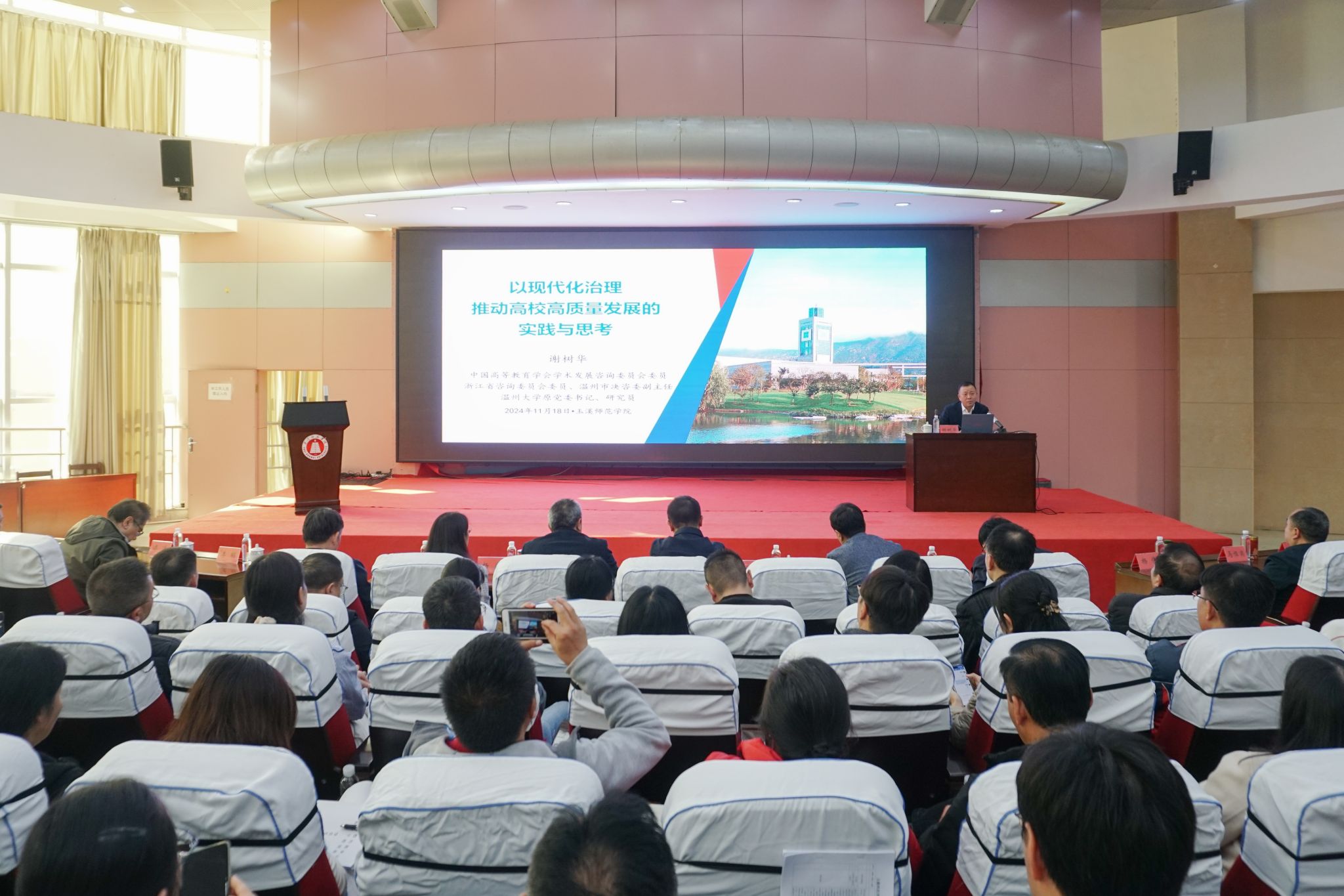11月18日下午,玉溪师范学院在图书馆多元学术报告厅举行贯彻落实全国教育大会精神专场报告会,温州大学原党委书记、研究员,中国高教学会学术发展咨询委委员、浙江省人民政府咨询委委员、温州市决咨委副主任谢树华应邀到校作《以现代化治理推动大学高质量发展的实践与思考》专题报告。