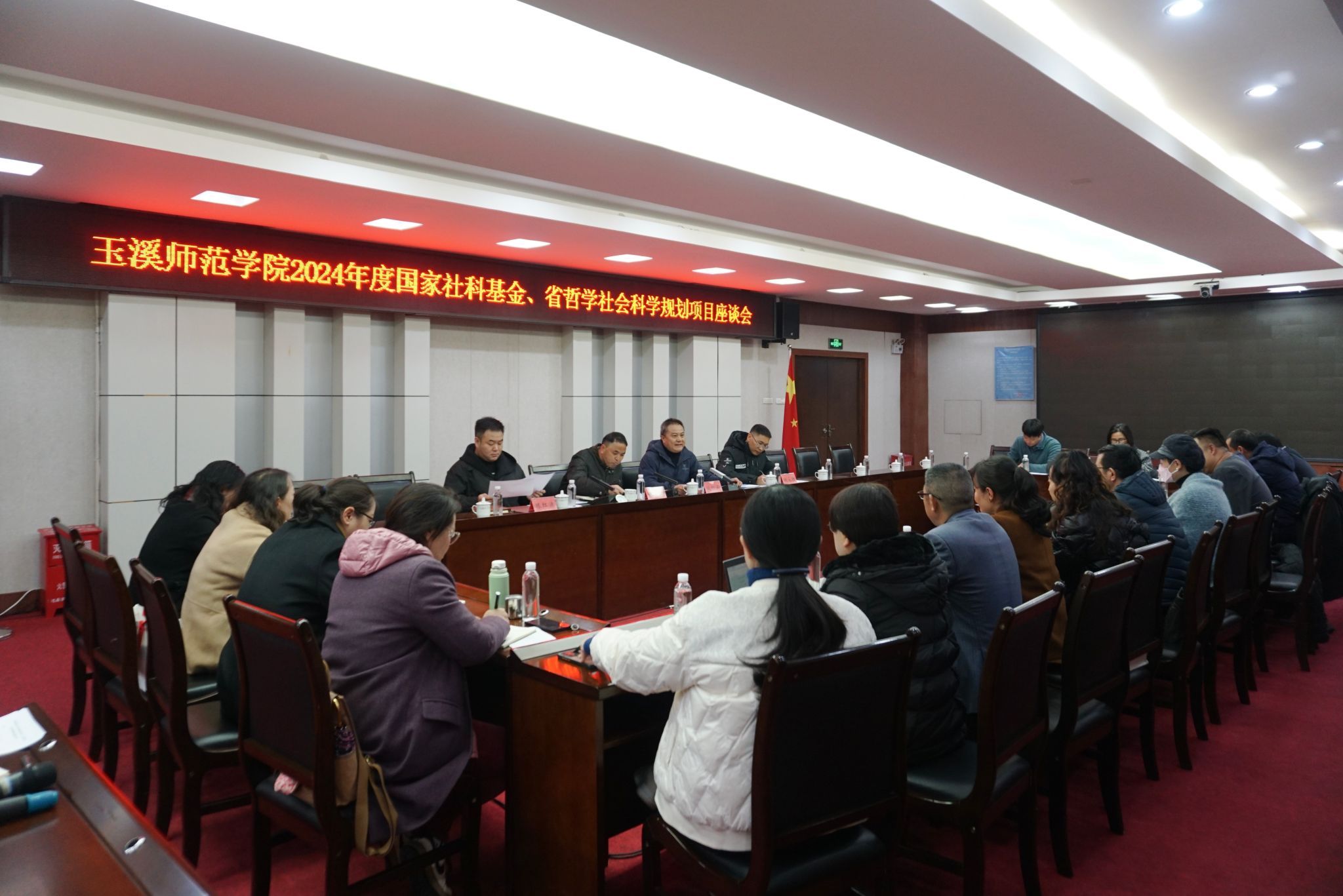 11月28日,玉溪师范学院在图书馆3003会议室举行社科基金项目申报与管理座谈会。云南省哲学社会科学工作办公室主任杨新刚、主任科员陈红波到场指导,我校文科类学院院长、科研秘书以及国家社科基金、省哲学社会科学规划在研项目负责人参加座谈会。会议由玉溪师范学院校长段红云主持。