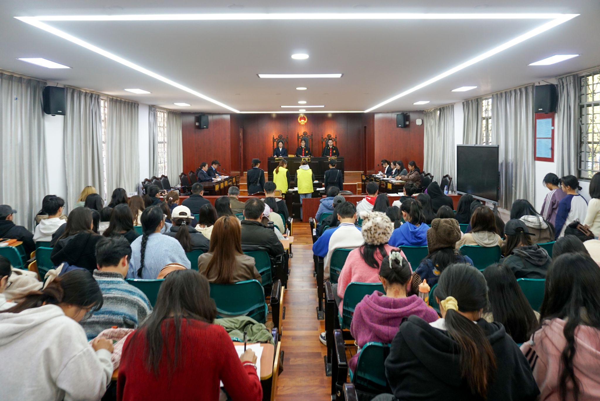 发挥专业优势,抓实普法宣传。12月3日上午,法学院法学专业、社会工作专业师生以“只因在人群中多看了你一眼”为题,为大家带来一堂生动的模拟法庭实训课。活动模拟了一起未成年人故意伤害案的发生、发展、审理、宣判过程,通过情景再现、模拟法庭、现场答疑等形式,为文学院、音乐学院等其他学院师生再现了一场生动的普法课堂。
