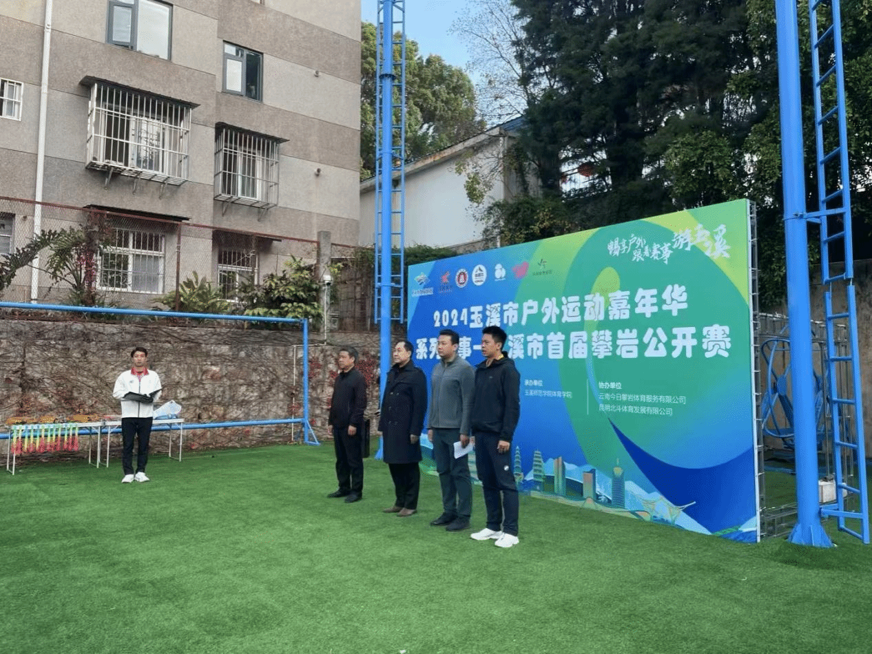 2024年12月8日,由玉溪市教育体育局指导,云南志励体育发展有限公司主办,玉溪师范学院体育学院承办,云南今日攀岩体育服务有限公司与昆明北斗体育发展有限公司协办的“2024玉溪市户外运动嘉年华系列赛事——玉溪市首届攀岩公开赛”在玉溪师范学院攀岩场隆重开幕。