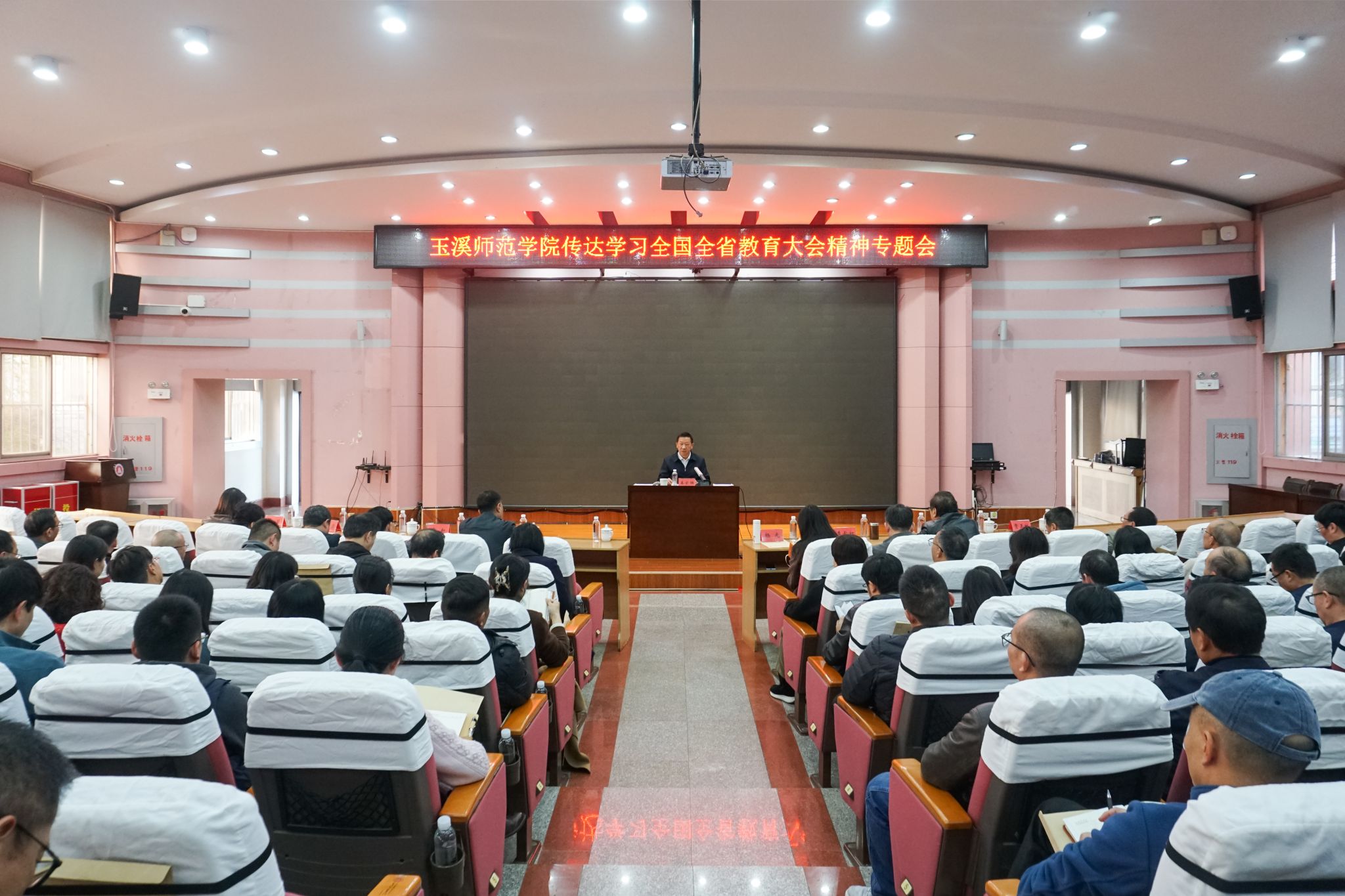 12月13日下午,玉溪师范学院在科学讲堂召开专题会,传达学习全国、全省教育大会精神。学校党政领导、中层干部参加会议。会议由校党委书记姜家雄主持。