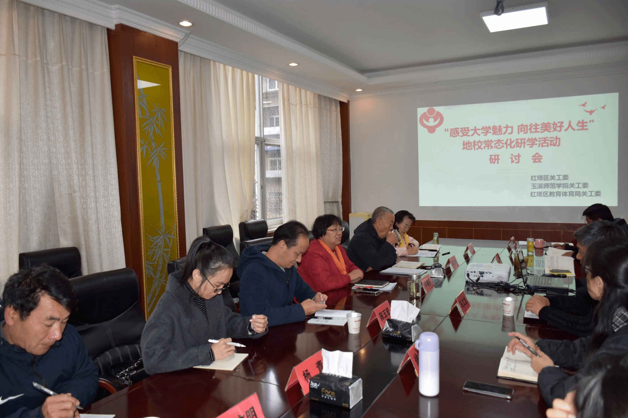 为深化校地合作,推动关心下一代工作高质量发展,12月26日上午,玉溪师范学院关工委与红塔区关工委、红塔区教体局关工委开展工作交流研讨。玉溪师范学院关工委执行主任马文龙、红塔区关工委主任毕继芬、红塔区关工委副主任赖其林、红塔区关工委驻会“五老”冯亚萍、红塔区关工委办公室主任郑晓娟、玉溪师范学院关工委办公室主任徐印芳、红塔区教育体育局思想政治与德育股负责人陈玉宏、玉溪第六中学副校长杨青、玉溪第六中学关工委办公室主任胡文明等参会。会议由毕继芬主持。