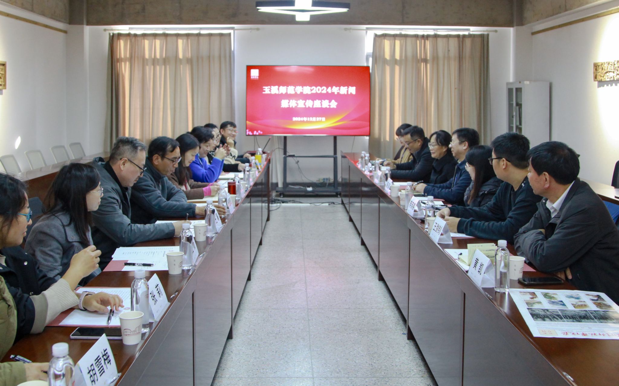 12月27日下午,玉溪师范学院2024年新闻媒体宣传座谈会在美术学院会议室召开。会议坚持以习近平文化思想为引领,认真听取新闻媒体单位的意见建议,准确把握宣传思想文化工作重点,不断开创学校宣传思想文化工作新局面。