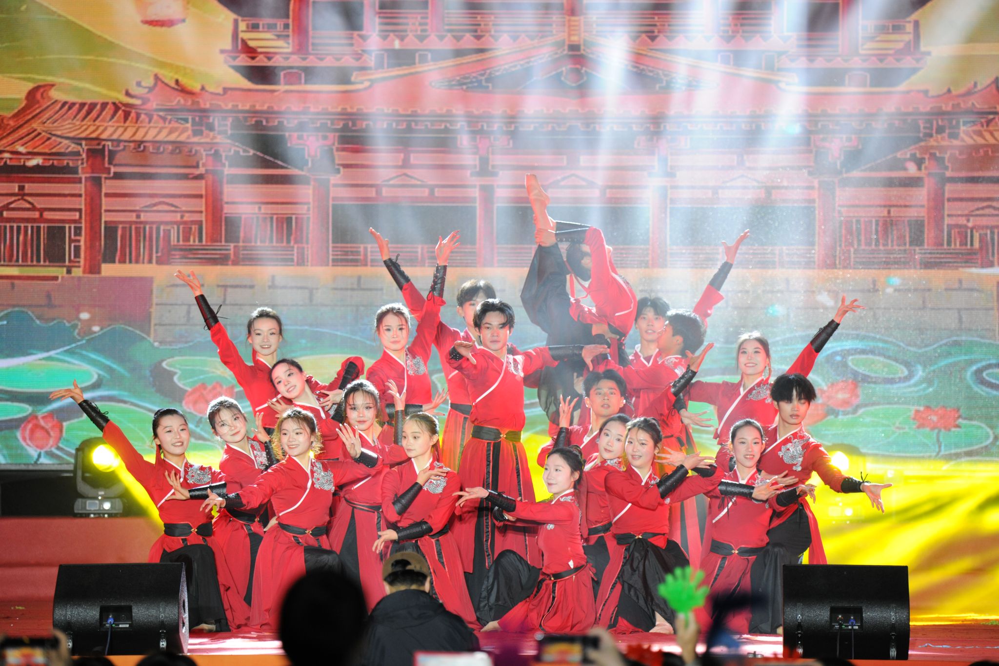古典舞《龙啸扶摇》,舞者们身着飘逸的古典服饰,动作整齐划一,时而轻盈优美,时而刚劲有力,犹如从画中走来,以精湛的技艺充分展现了古典舞的优雅与力量之美。