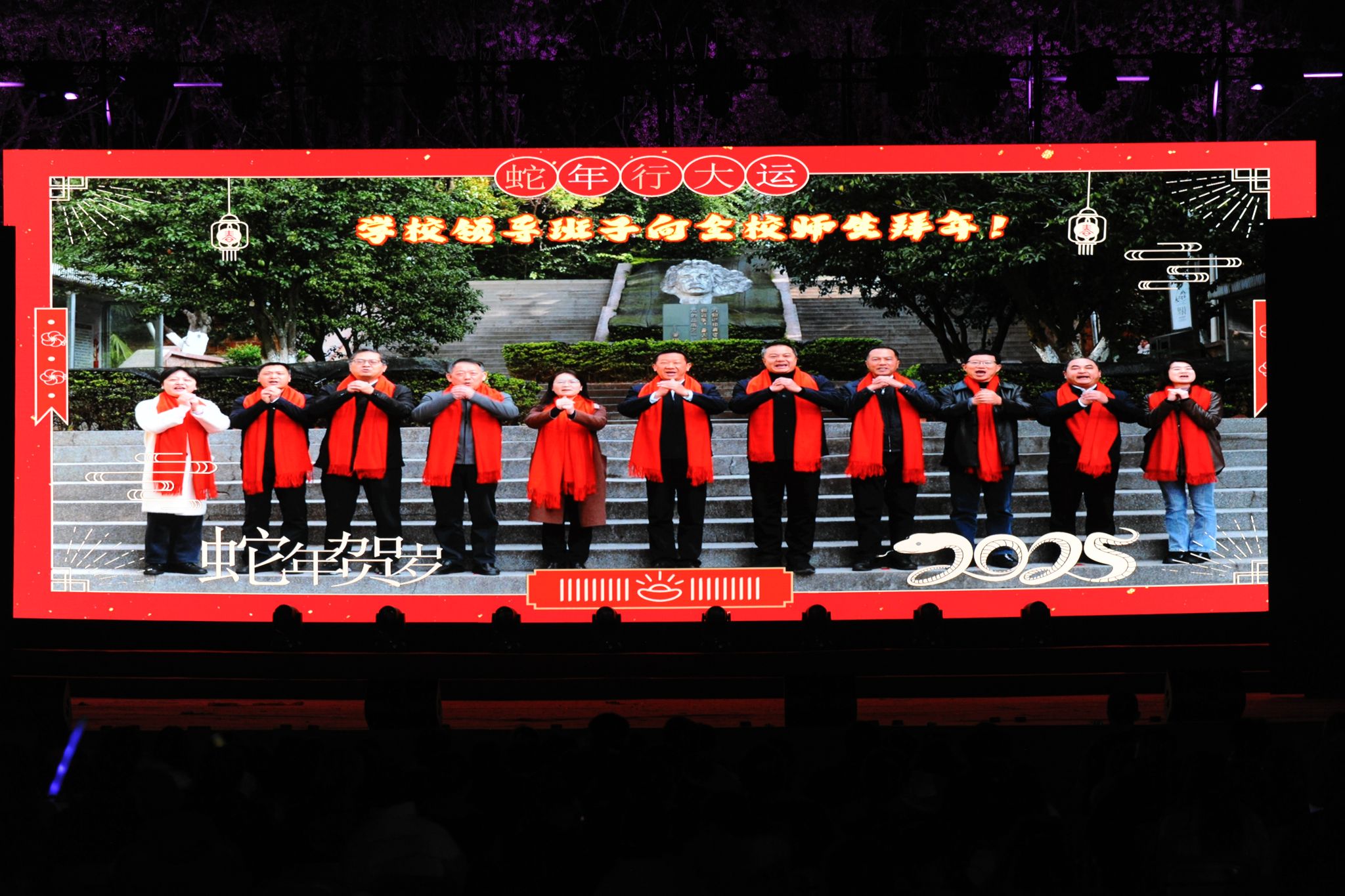 学校党政领导班子为广大师生送上新年祝福,“祝同学们学业进步,祝老师们工作顺利,祝大家新年快乐,事事如意!”