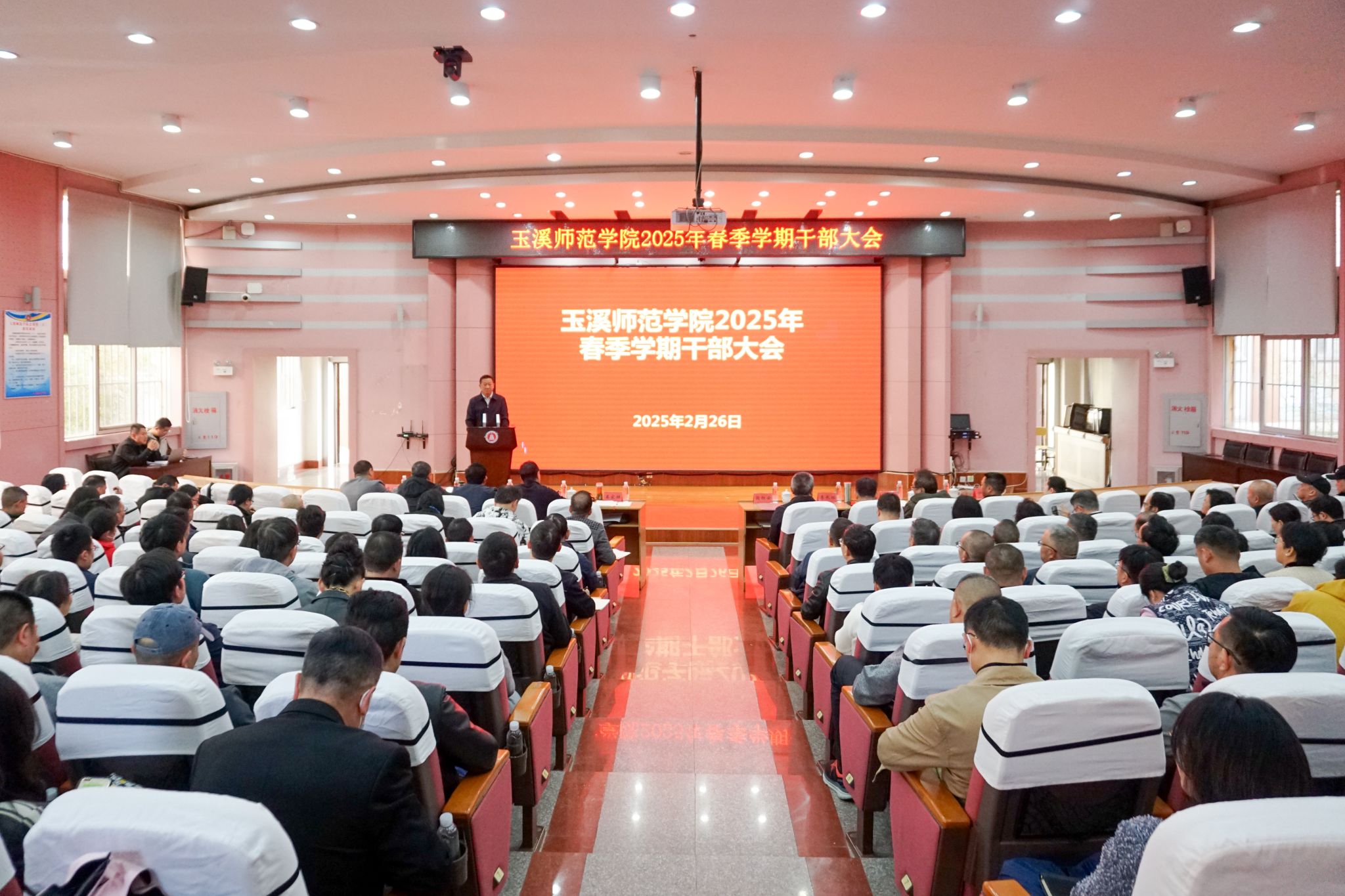 2月26日下午,玉溪师范学院在科学讲堂召开2025年春季学期干部大会。会议以习近平新时代中国特色社会主义思想为指导,认真贯彻全国教育大会和全省教育大会精神,聚焦云南省“3815”战略发展目标及教育高质量发展三年行动计划,总结工作、分析形势,统一思想、凝聚共识,安排部署2025年的重点工作。校党委书记姜家雄主持会议并讲话,校党委副书记、校长段红云作工作报告。