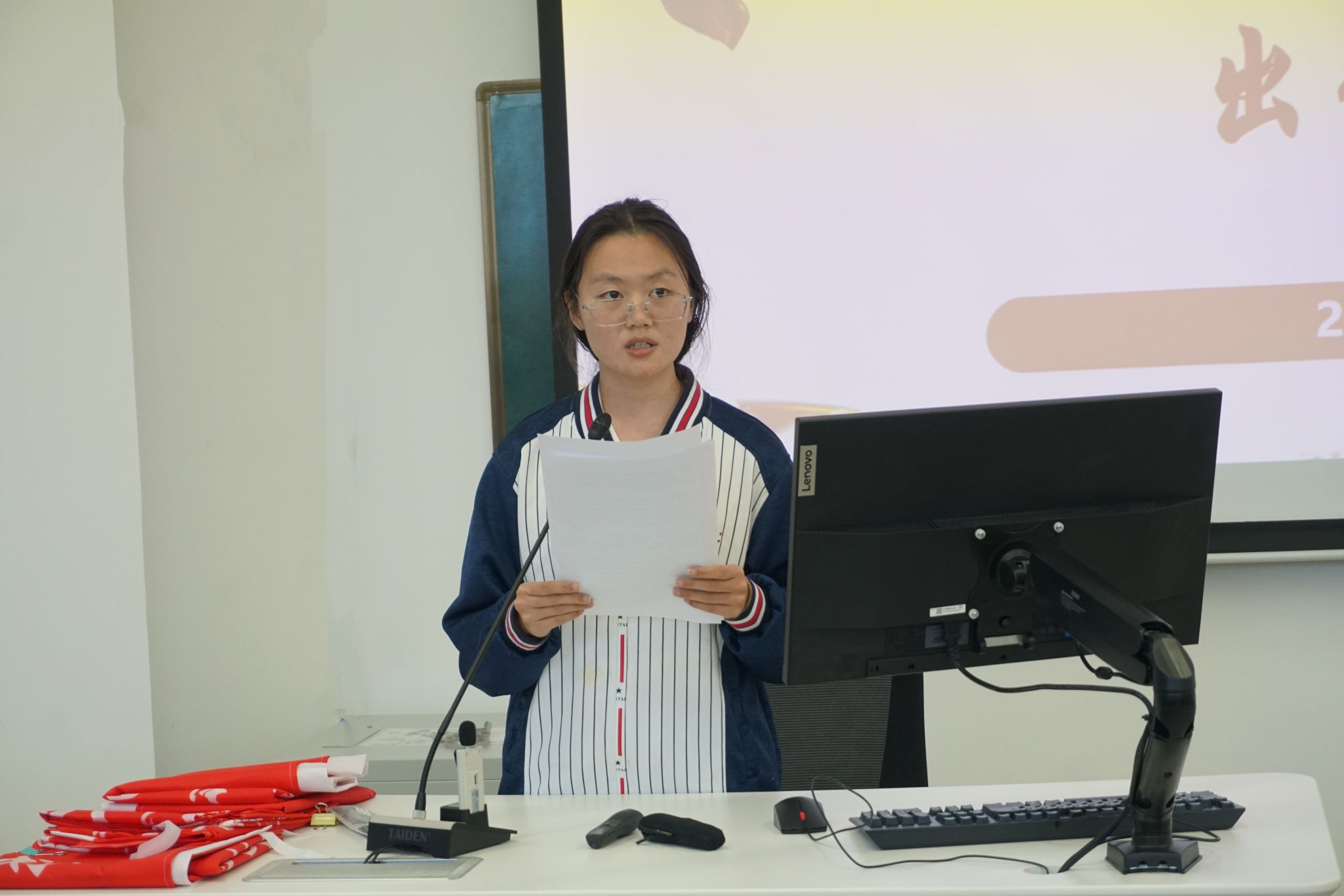 仪式现场,体育学院教师张雪峰、美术学院娜玉莹同学作为派驻师生代表,分享了自己的所思所想,展现了支教师生积极奉献的精神风貌。