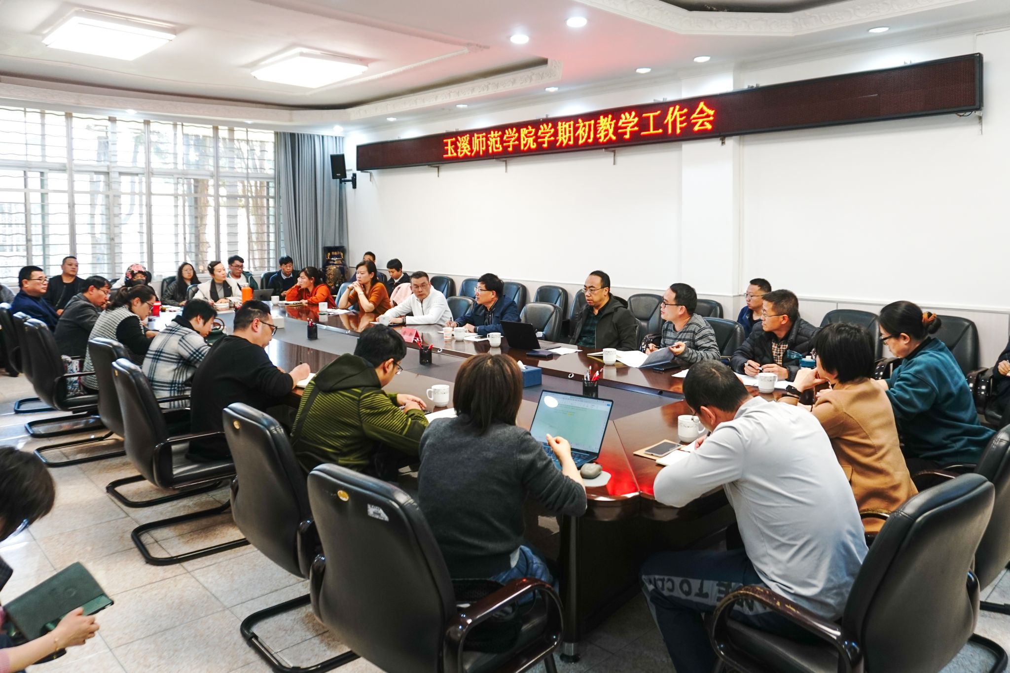 3月5日下午,玉溪师范学院在第一办公楼一楼会议室召开2025年春季学期初教学工作会,校党委委员、副校长章新出席会议并讲话。教务处、教学质量监控与评估中心负责人,各二级学院分管教学副院长及教学秘书、教务处科级以上干部参加会议,会议由教务处处长安镇宙主持。