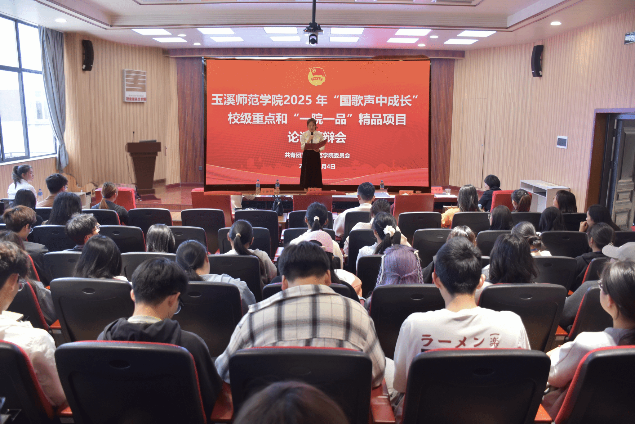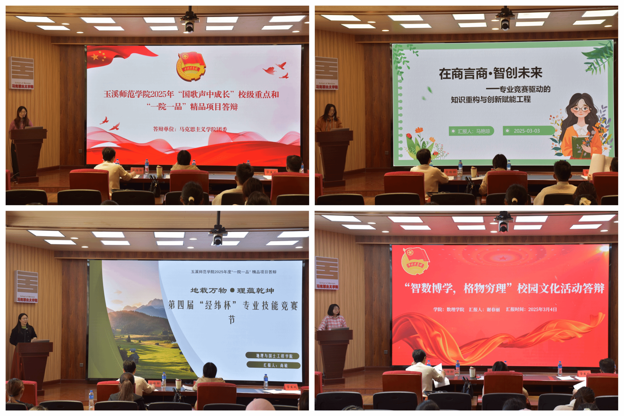 为学习宣传贯彻习近平文化思想,落实立德树人根本任务,结合学校“文化润校”要求,不断提升第二课堂人才培养质量,打造“国歌声中成长”实践育人品牌,形成一批具有地方特色的校级重点项目和具有专业特色的“一院一品”校园文化精品项目,3月4日,校团委在“四耳”报告厅组织开展2025年“国歌声中成长”校级重点项目和“一院一品”精品项目论证答辩会。