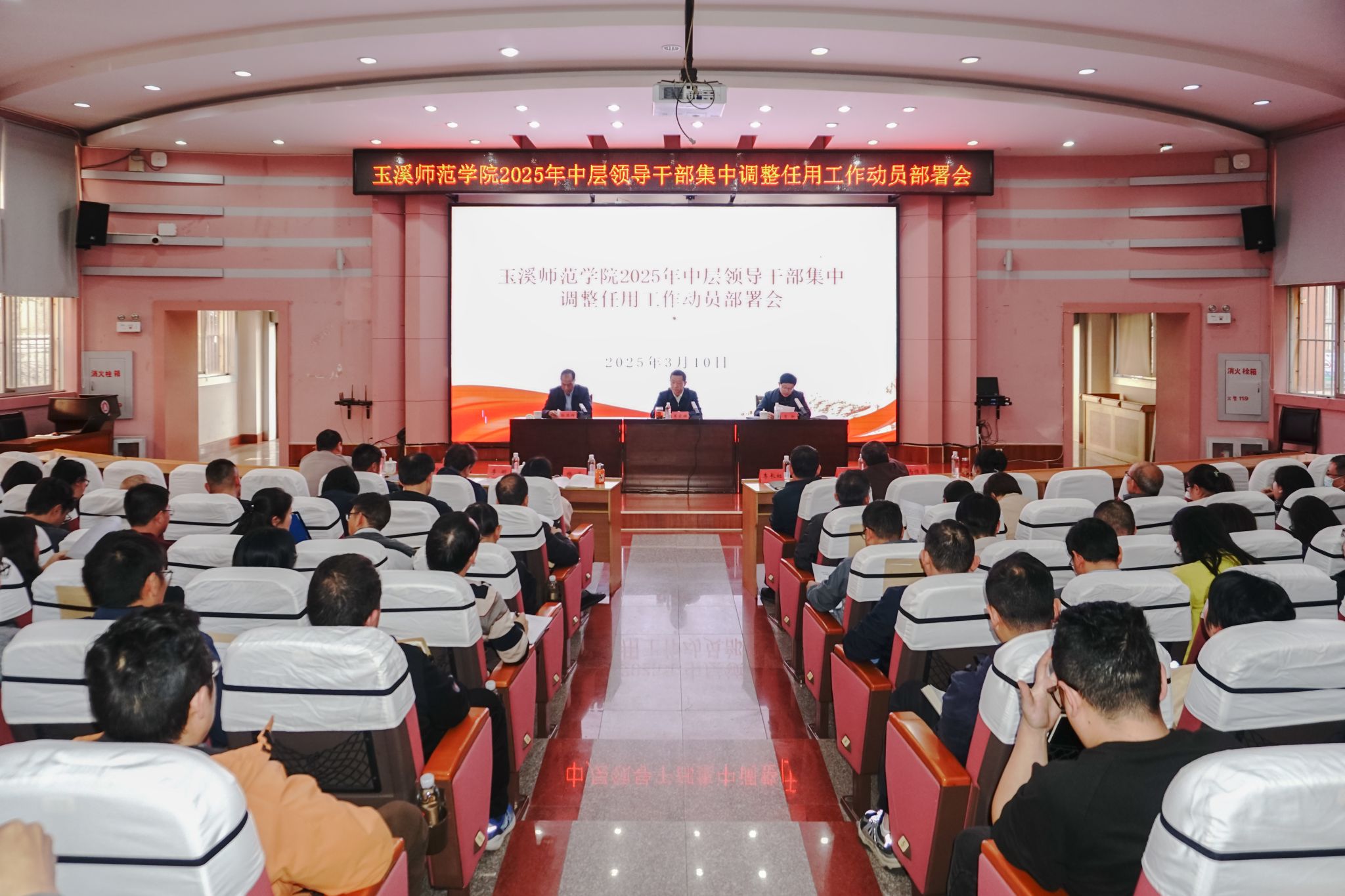 为进一步加强高素质专业化干部队伍建设,持续优化干部队伍结构,3月10日,玉溪师范学院在科学讲堂召开2025年中层领导干部集中调整任用工作动员部署会。校党委书记姜家雄作动员讲话。学校党政领导、全体中层干部(含非实职)参加会议。会议由校党委委员、副校长章新主持。