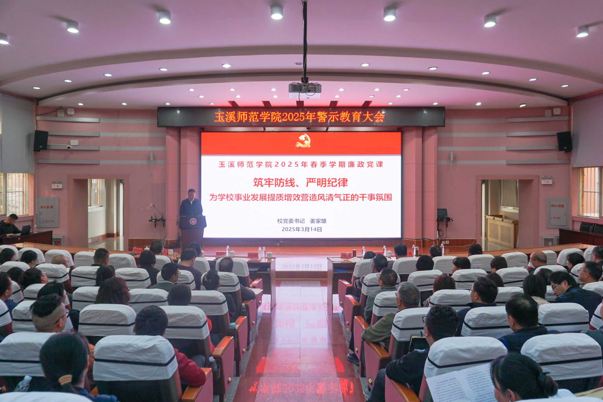 3月14日下午,玉溪师范学院2025年警示教育大会在科学讲堂召开。学校校级领导、中层干部、“十个关口”部门科级干部,以及校纪委委员、二级党委纪检委员、纪检处工作人员共138人参加会议。校党委书记姜家雄主持会议。