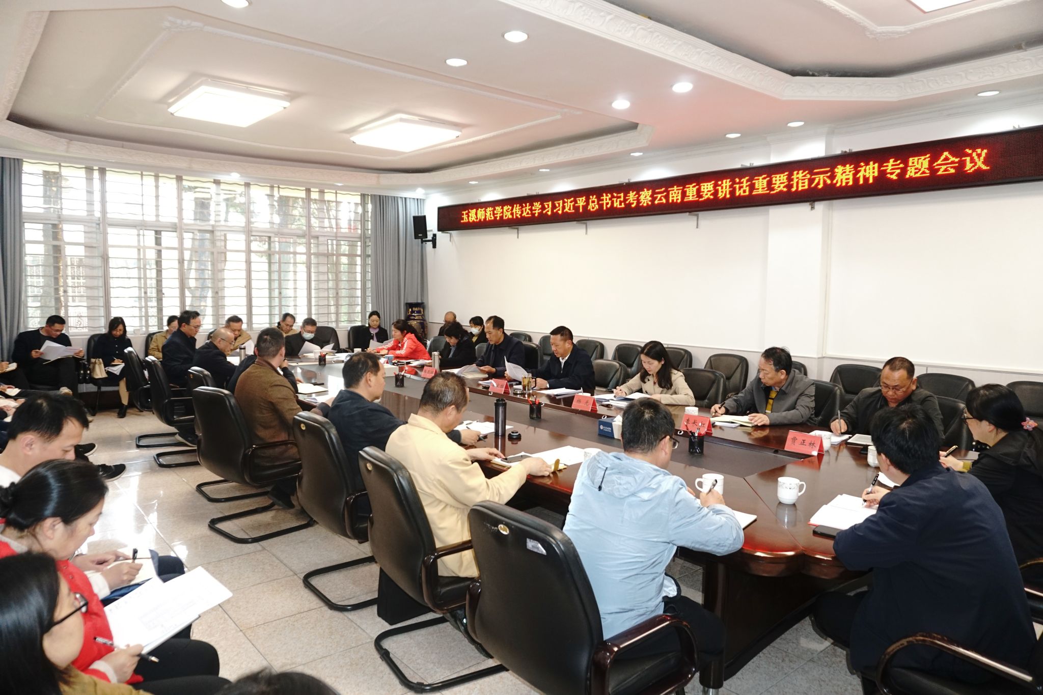 3月24日,玉溪师范学院召开专题会议,深入学习贯彻习近平总书记3月19—20日在云南考察调研时的重要讲话精神。校党委书记姜家雄传达学习习近平总书记考察云南重要讲话重要指示精神。学校党委副书记杨光、张亚辉,校纪委书记李长虹,副校长章新,二级党委书记、党务部门和团委主要负责人参加会议。