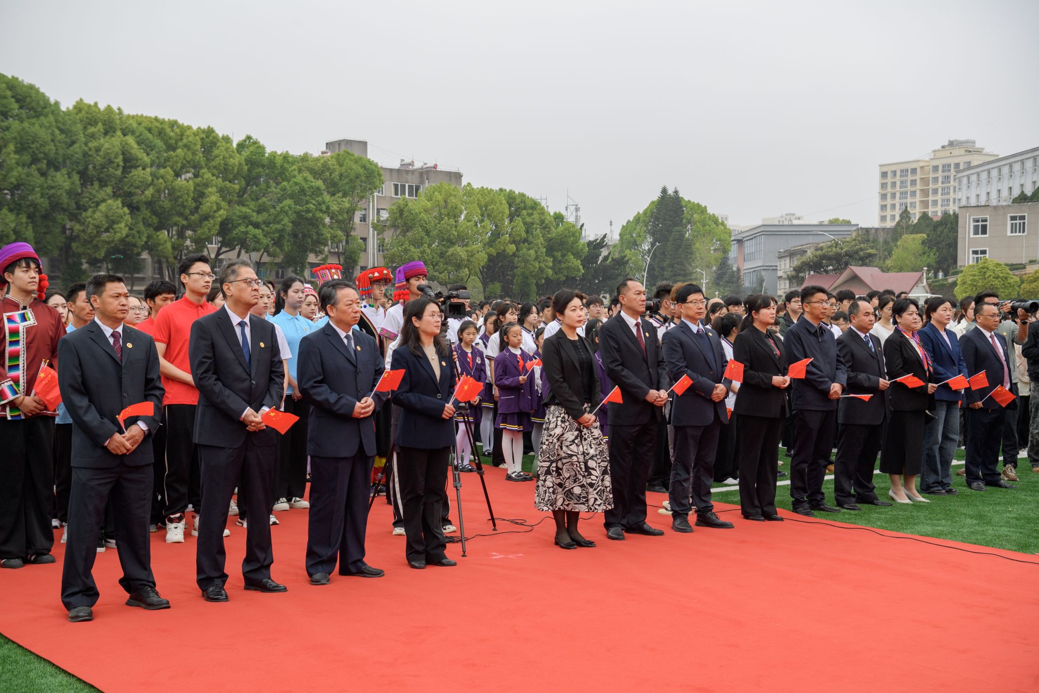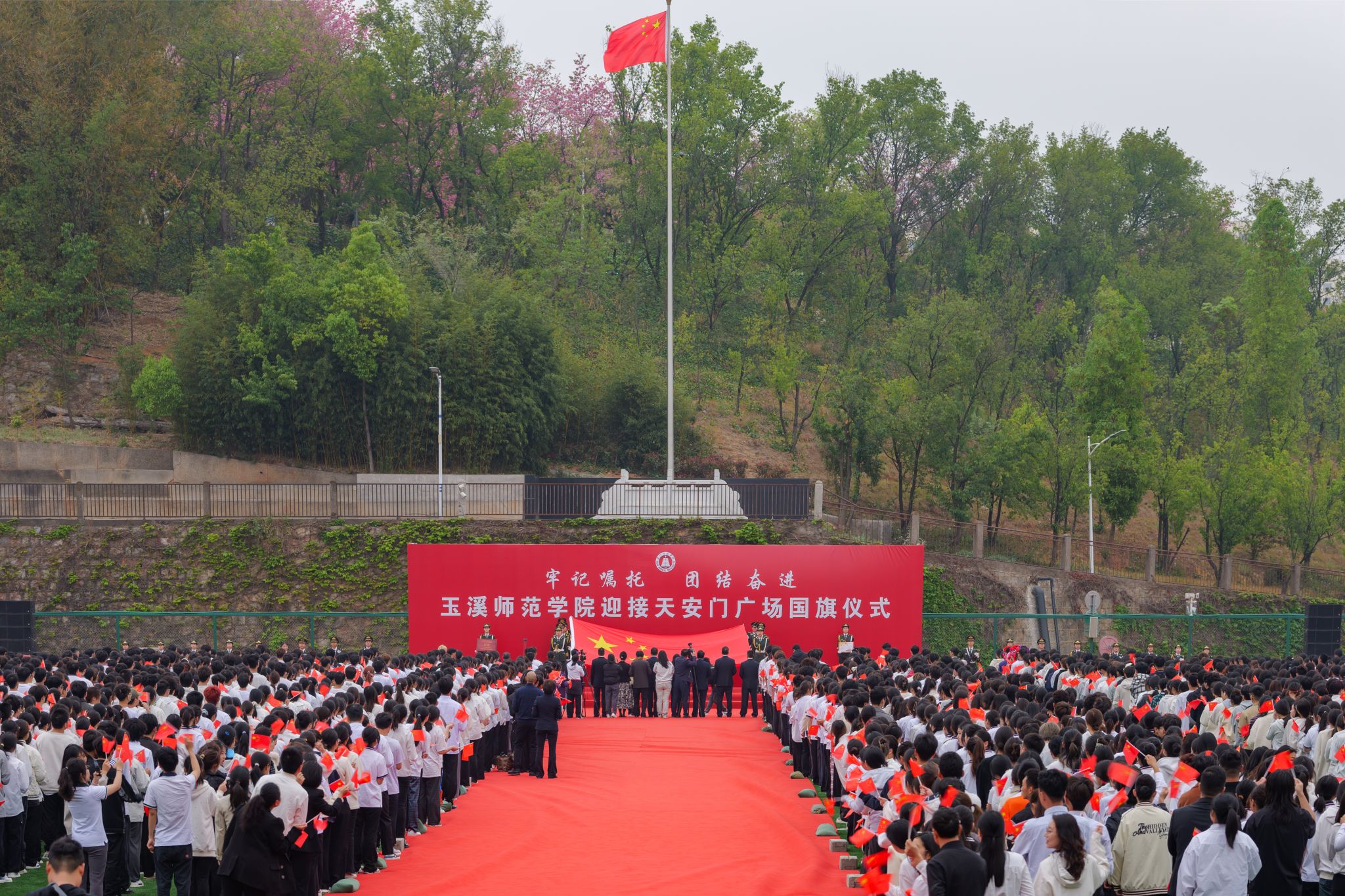云南省委教育工委宣传部部长王文婷,玉溪市委宣传部副部长王玲,玉溪市教育体育局副局长赖朝东,玉溪师范学院党政领导、全体中层干部、思政课教师代表、全体辅导员、师生代表等共迎国旗,共同见证这份荣耀。