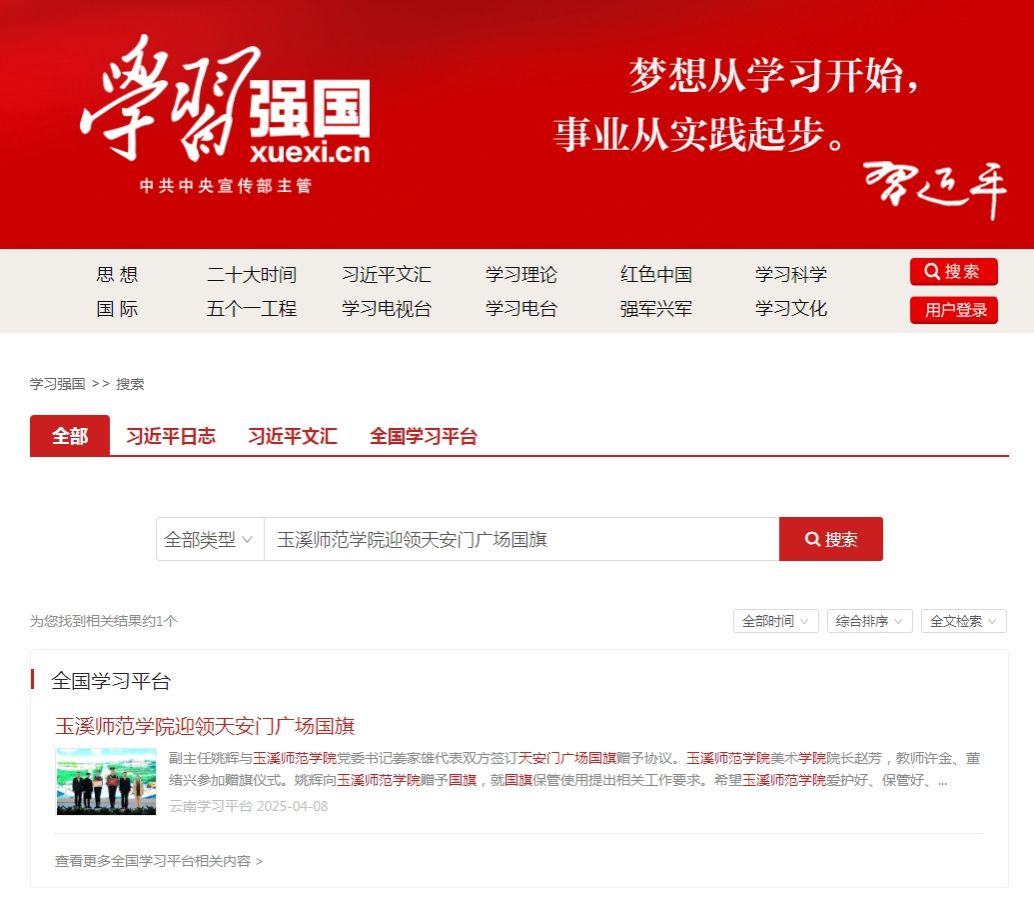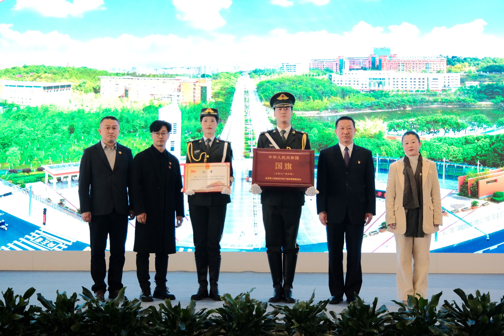 3月28日下午,应玉溪师范学院的申请,北京市人民政府天安门地区管理委员会向玉溪师范学院赠予一面曾在天安门广场上升挂过的国旗。这面编号为2023—0140、长5米、高3.3米、重1800克的国旗,曾于2023年5月20日在天安门广场上升起,这天正值玉溪师范学院建校45周年校庆日。获赠这面国旗,对玉溪师范学院具有特殊的纪念意义和历史价值。