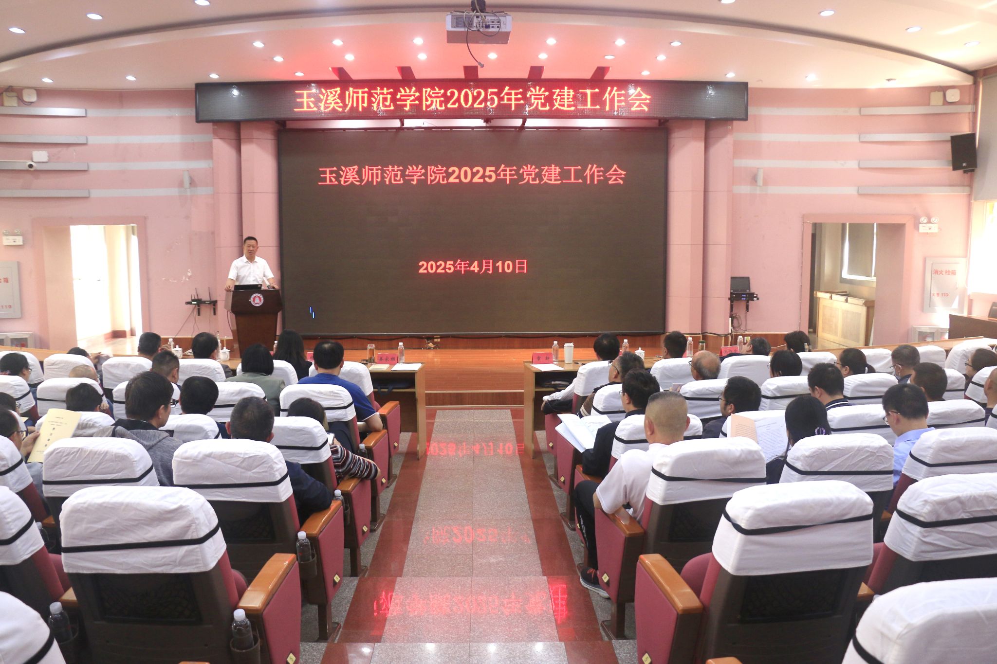 4月10日,玉溪师范学院召开2025年党建工作会,校党委书记姜家雄主持会议并作总结讲话。校党委副书记杨光、张亚辉,校纪委书记、监察专员李长虹分别总结了2024年意识形态、基层党建、党风廉政建设工作取得成效,并对2025年工作进行安排部署。