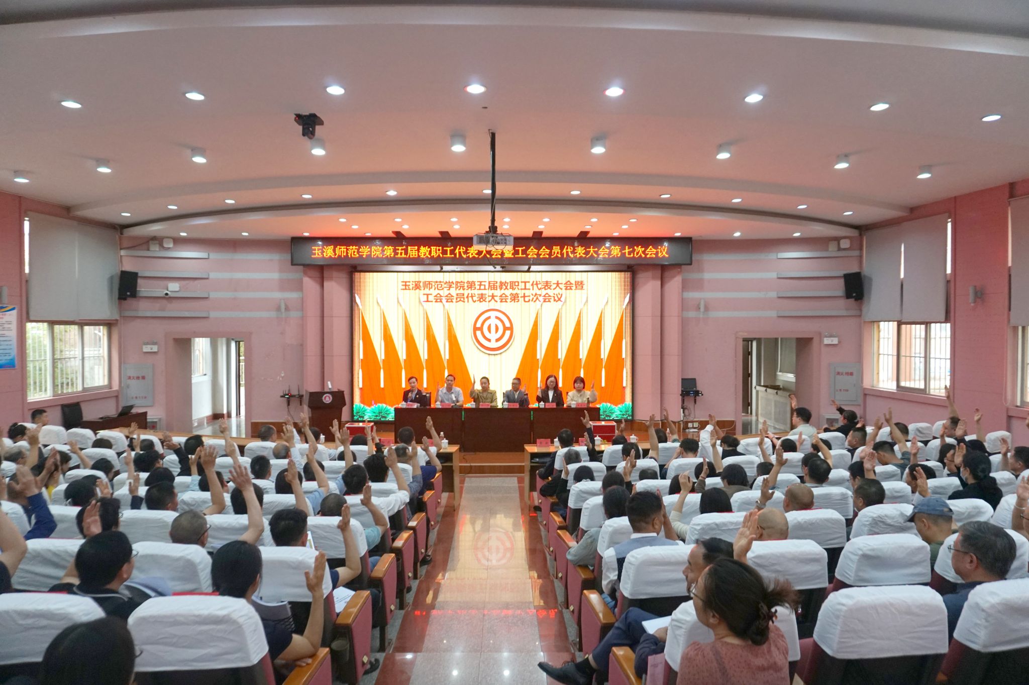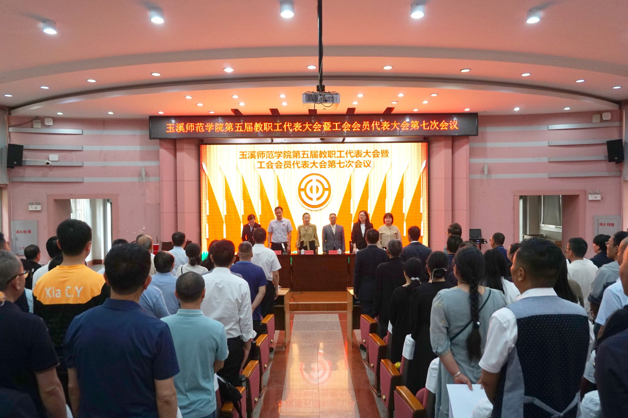 在雄壮的《国际歌》声中,玉溪师范学院第五届教职工代表大会暨工会会员代表大会第七次会议圆满闭幕。