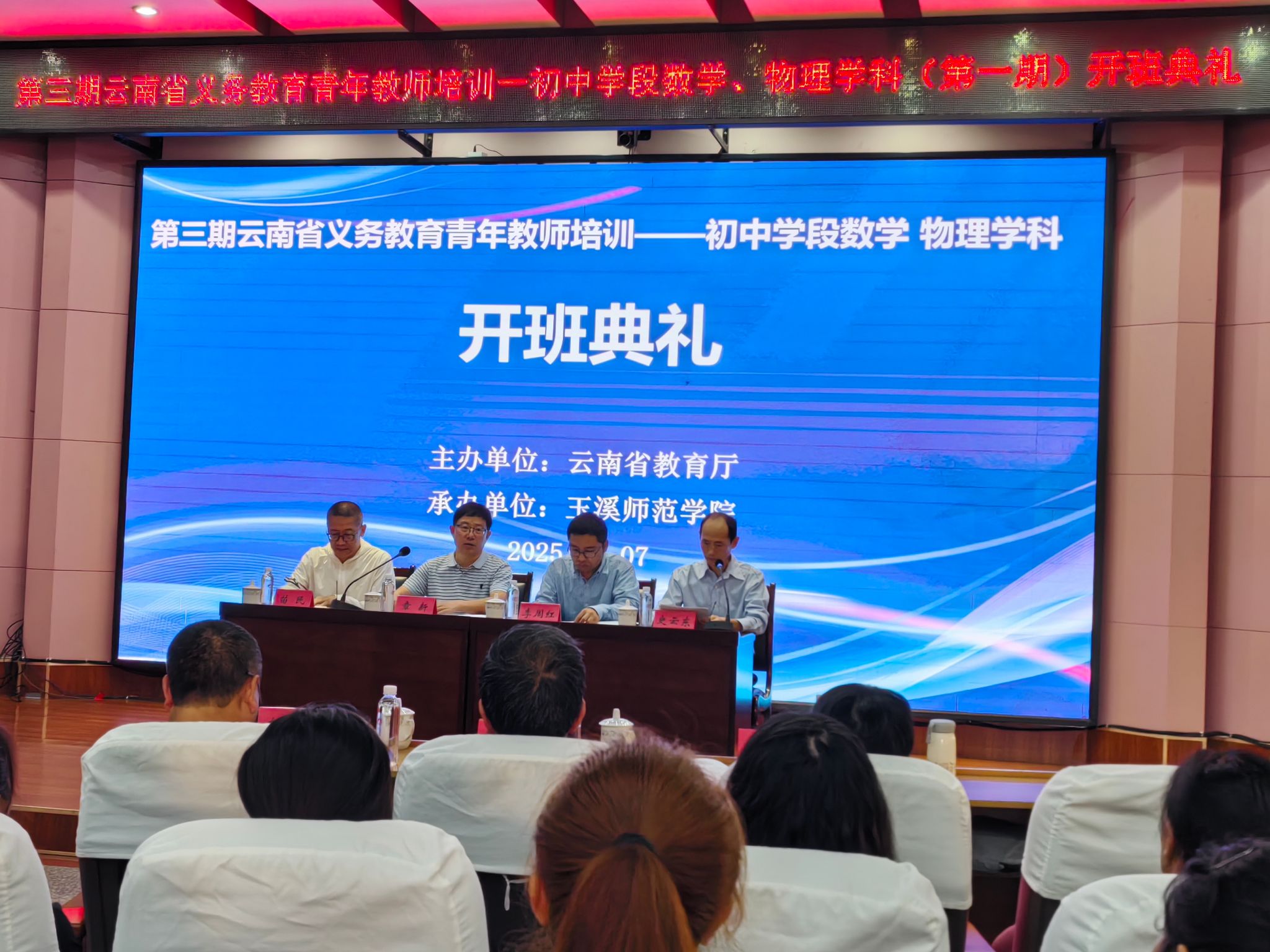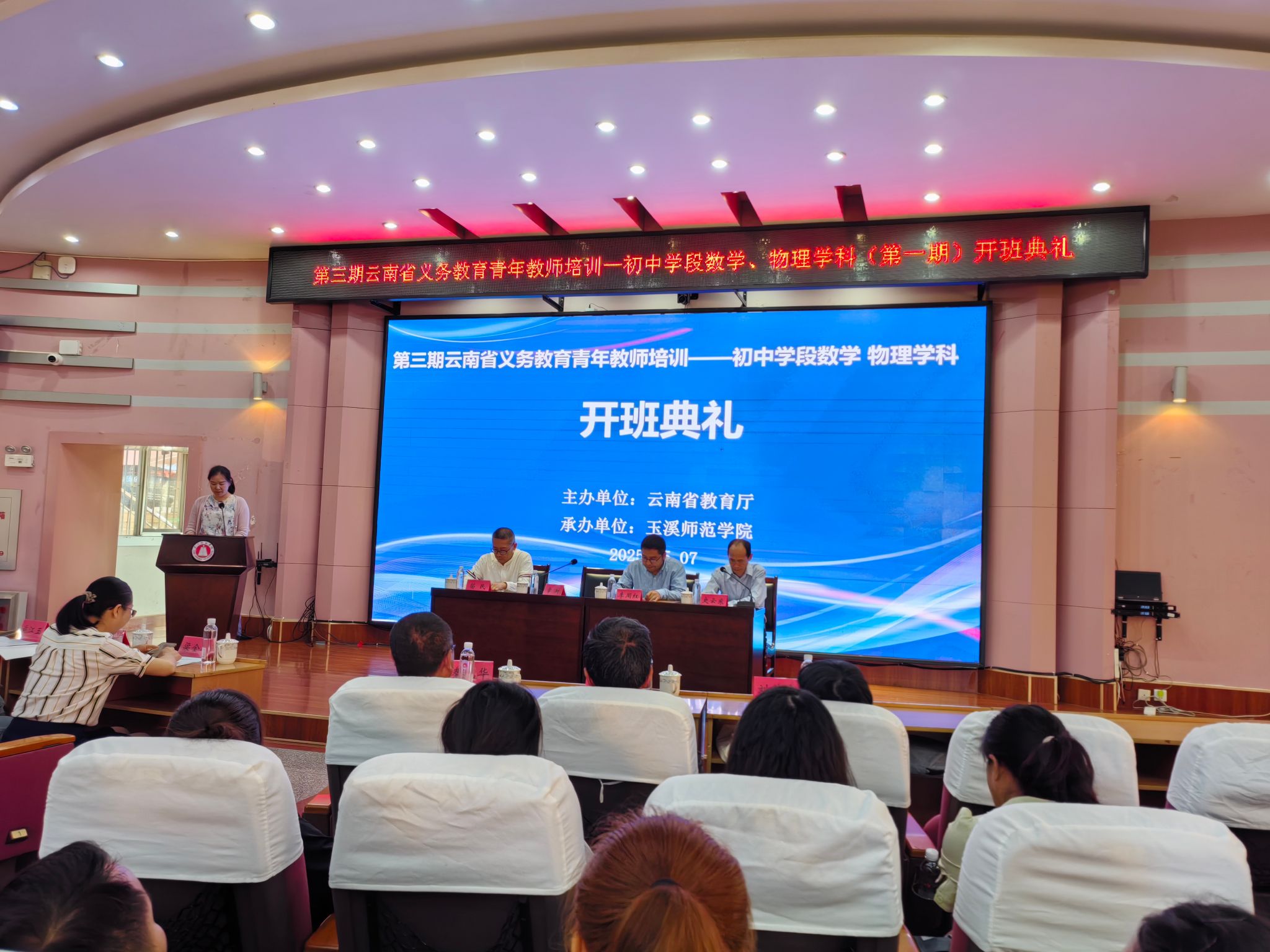 5月7日上午,由云南省教育厅主办、玉溪师范学院承办的第三期云南省义务教育青年教师培训——初中学段数学、物理学科培训开班典礼在玉溪师范学院科学讲堂举行。此次培训聚焦初中数学、物理课堂教学模式改革,围绕“课堂革命——以学为主的课堂教学改革”主题,让参训学员掌握以学为主的课堂组织思维、策略和方法。