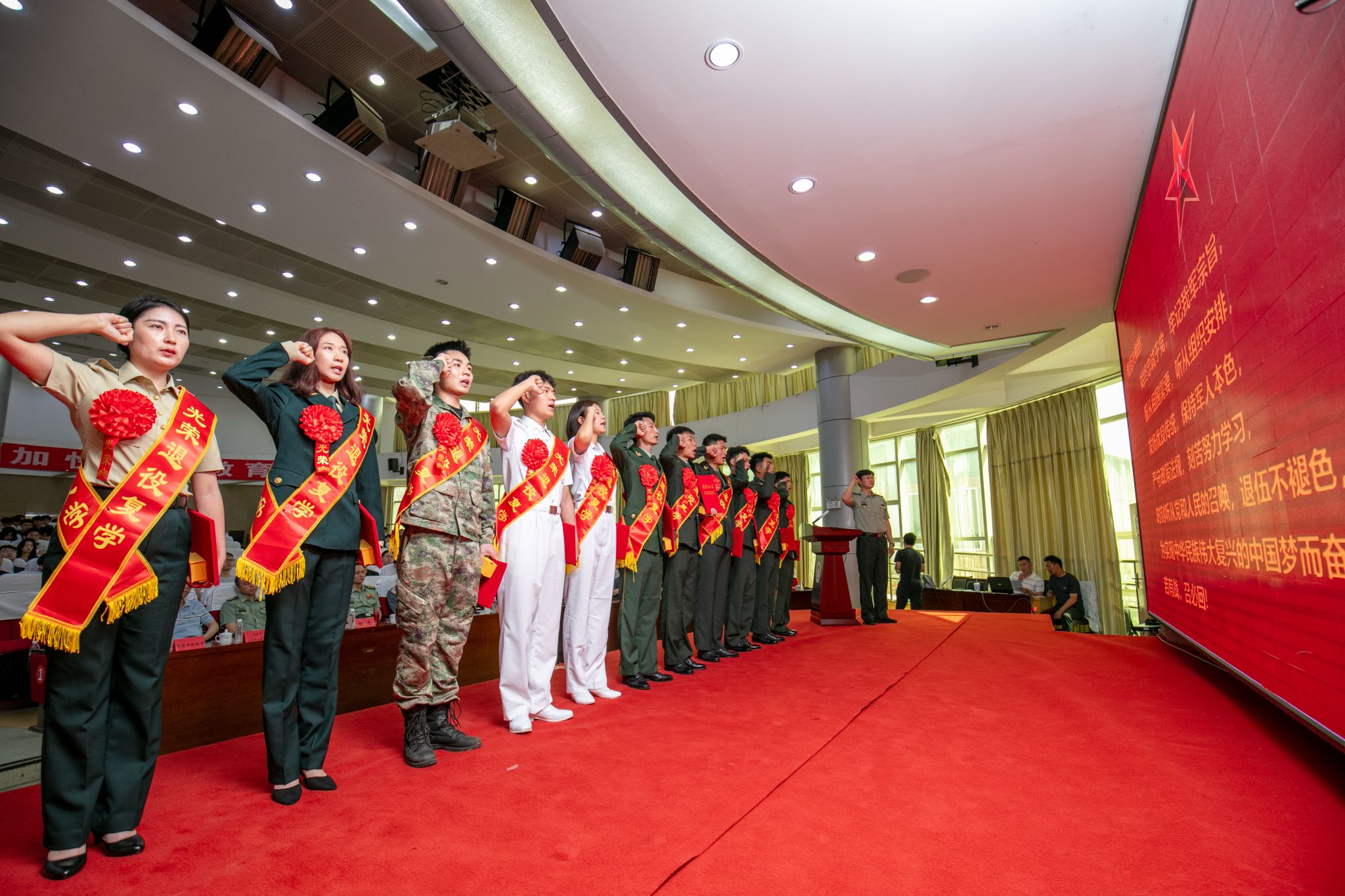 退役复学学生欢迎仪式上,褚小波带领退役复学学生庄严宣誓;高职学院学生表演情景剧《清澈的爱 只为中国》;化学生物与环境学院王清美同学通过视频讲述自己入伍成长蜕变的故事,号召同学们追逐青春梦想、投身强军报国事业。