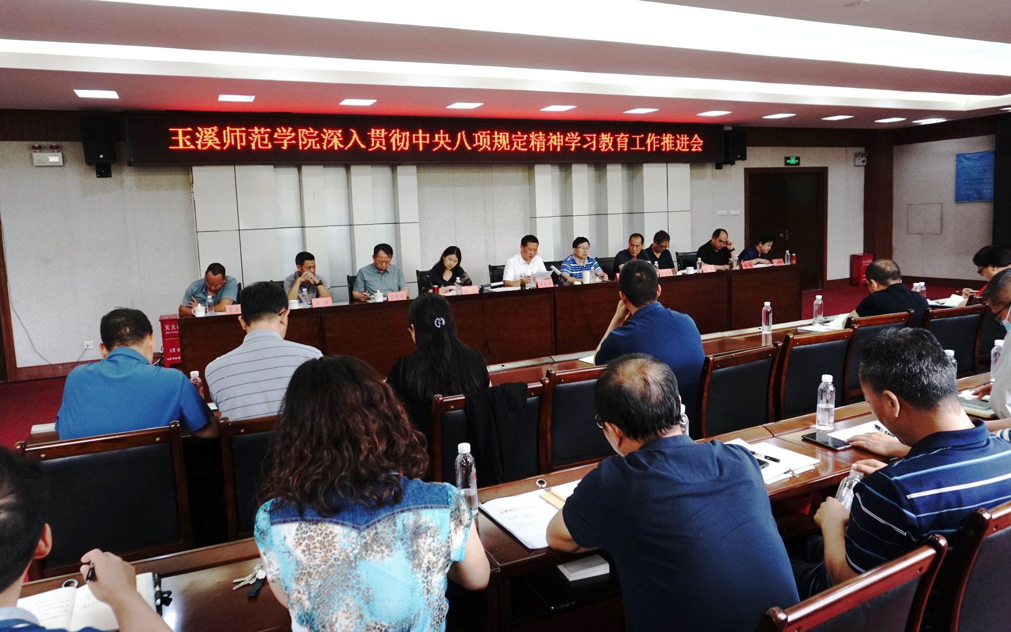 5月22日下午,玉溪师范学院在图书馆3003会议室召开深入贯彻中央八项规定精神学习教育工作推进会,校党委书记姜家雄主持会议并讲话。学校党政领导、二级党委书记、各部门主要负责人、学习教育工作专班成员参加会议。