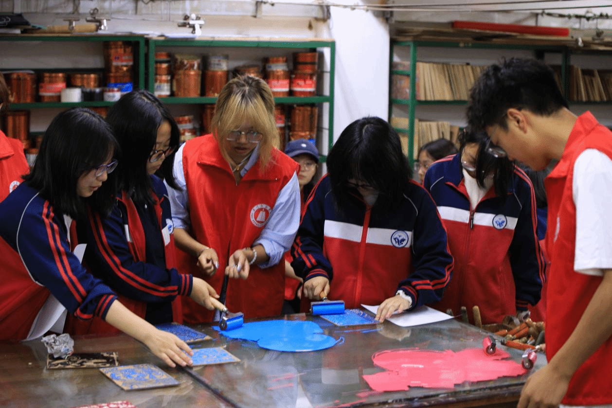 在湄公河次区域民族民间文化传习馆,同学们开启了一场别开生面的非遗文化探索之旅。大家先后深入民间陶艺工坊、木雕工坊,并亲身体验非遗木刻拓印制作,在老师的指导下完成属于自己的非遗作品。这种沉浸式、互动式的体验方式,让同学们深刻感悟到非物质文化遗产所蕴含的文化底蕴和民族智慧。