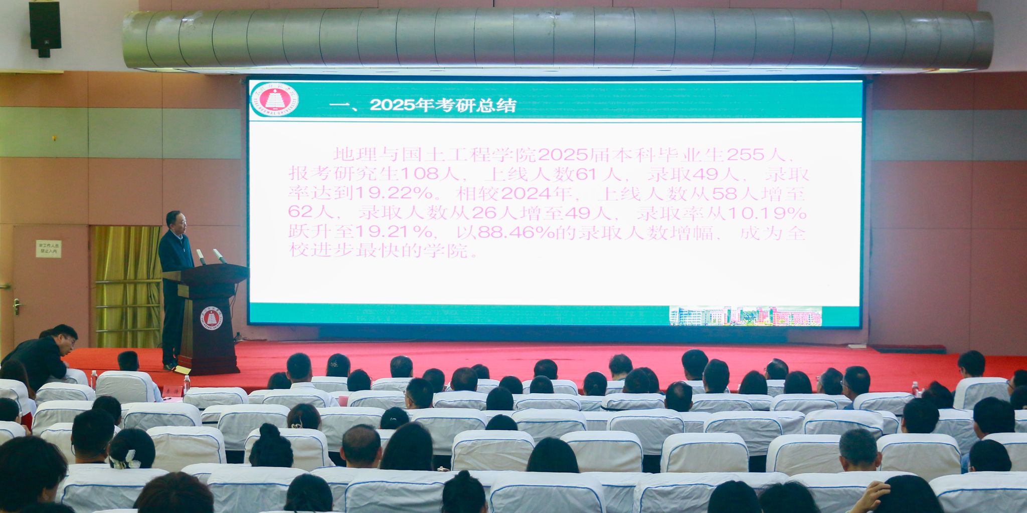章新总结指出,学校2025年考研工作坚持“早规划、强基础、重服务”,学科优势凸显、榜样力量涌现,工作成效明显。他表示,学校将持续优化课程体系、创新教学辅导、强化质量保障、深化综合改革、加强学科建设、改善学习环境、拓展发展空间、提升培养质量,助力更多学子实现考研梦想和人生理想。他希望“上岸”的同学们继续保持求真务实学风,在更高平台为母校争光添彩;他要求全体教师以“立德树人”为根本,将考研指导融入人才培养全过程,助力更多学子圆梦。