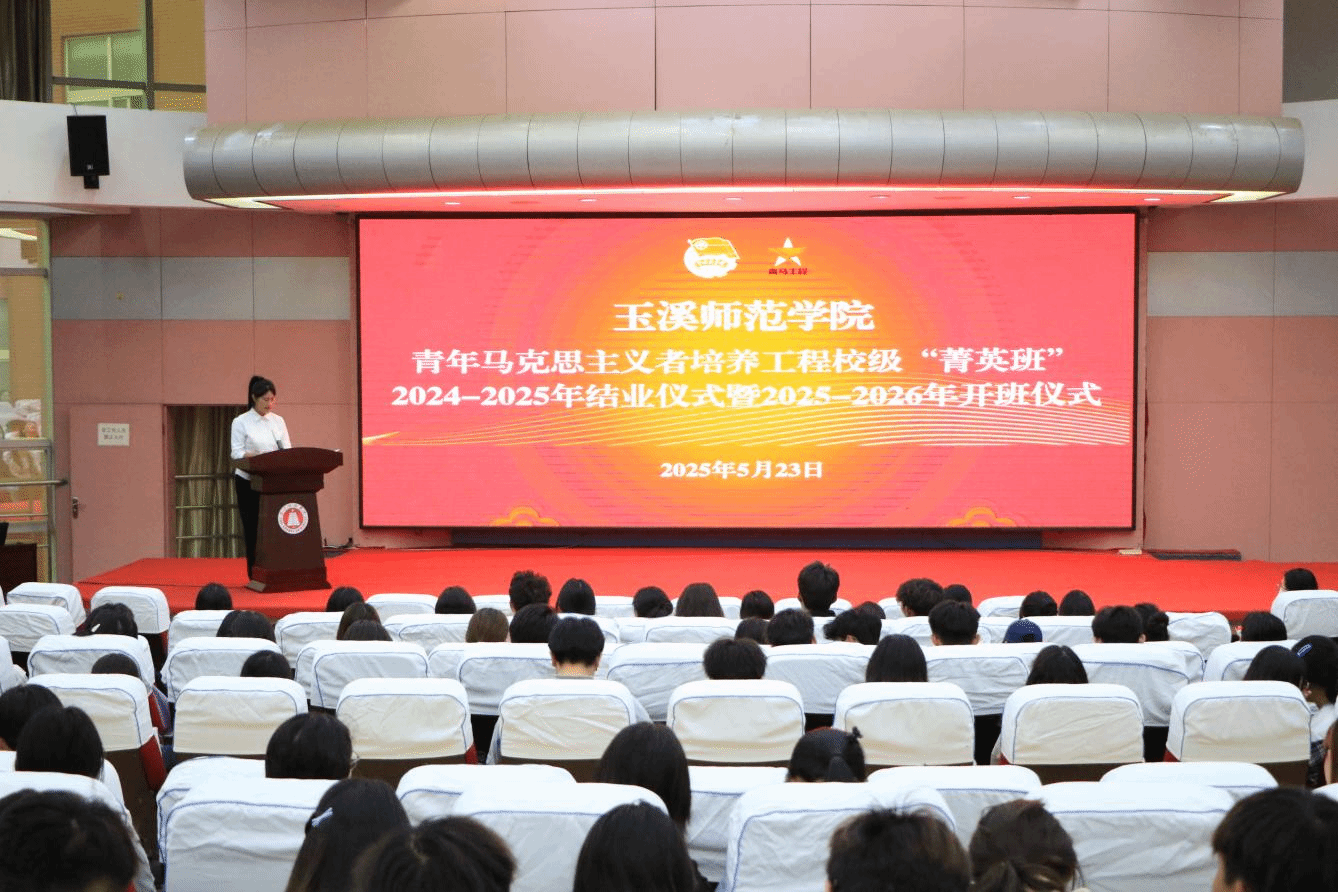 为深入学习贯彻习近平新时代中国特色社会主义思想,全面贯彻习近平总书记关于青年工作的重要思想,推进学校青年马克思主义者培养工程走深走实,5月23日,玉溪师范学院“青马工程”校级“菁英班”2024-2025年结业、2025-2026年开班仪式暨开班第一课在图书馆多元学术厅举行。校党委副书记杨光,校团委专职团干,各学院团委书记,校级“菁英班”学员,各学院“青苗班”学员代表及2022级、2023级、2024级团支部书记300余人参加会议。会议由校团委副书记余家赛主持。