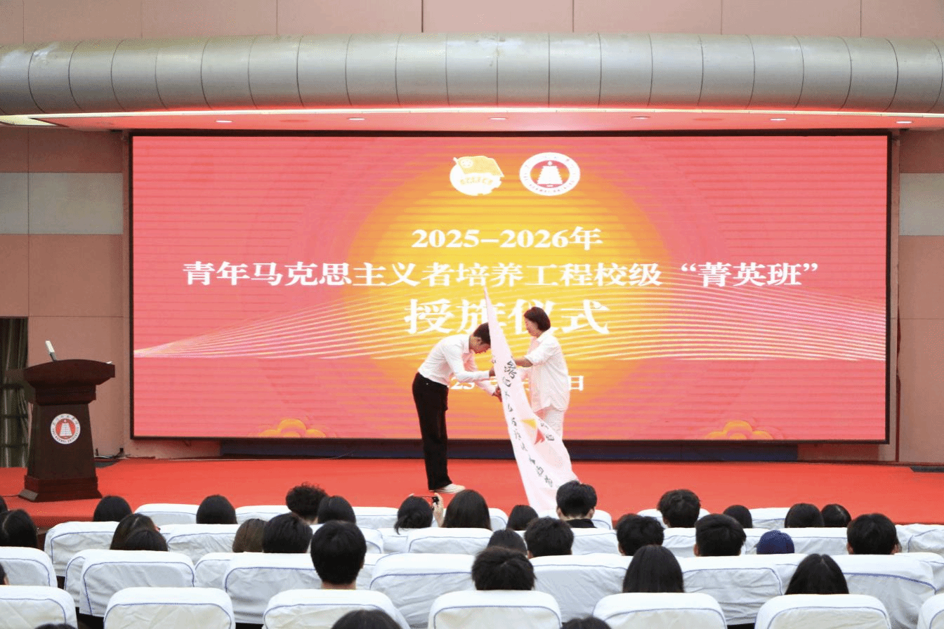 校团委副书记余家赛为2025-2026年“青马工程”校级“菁英班”授旗。
