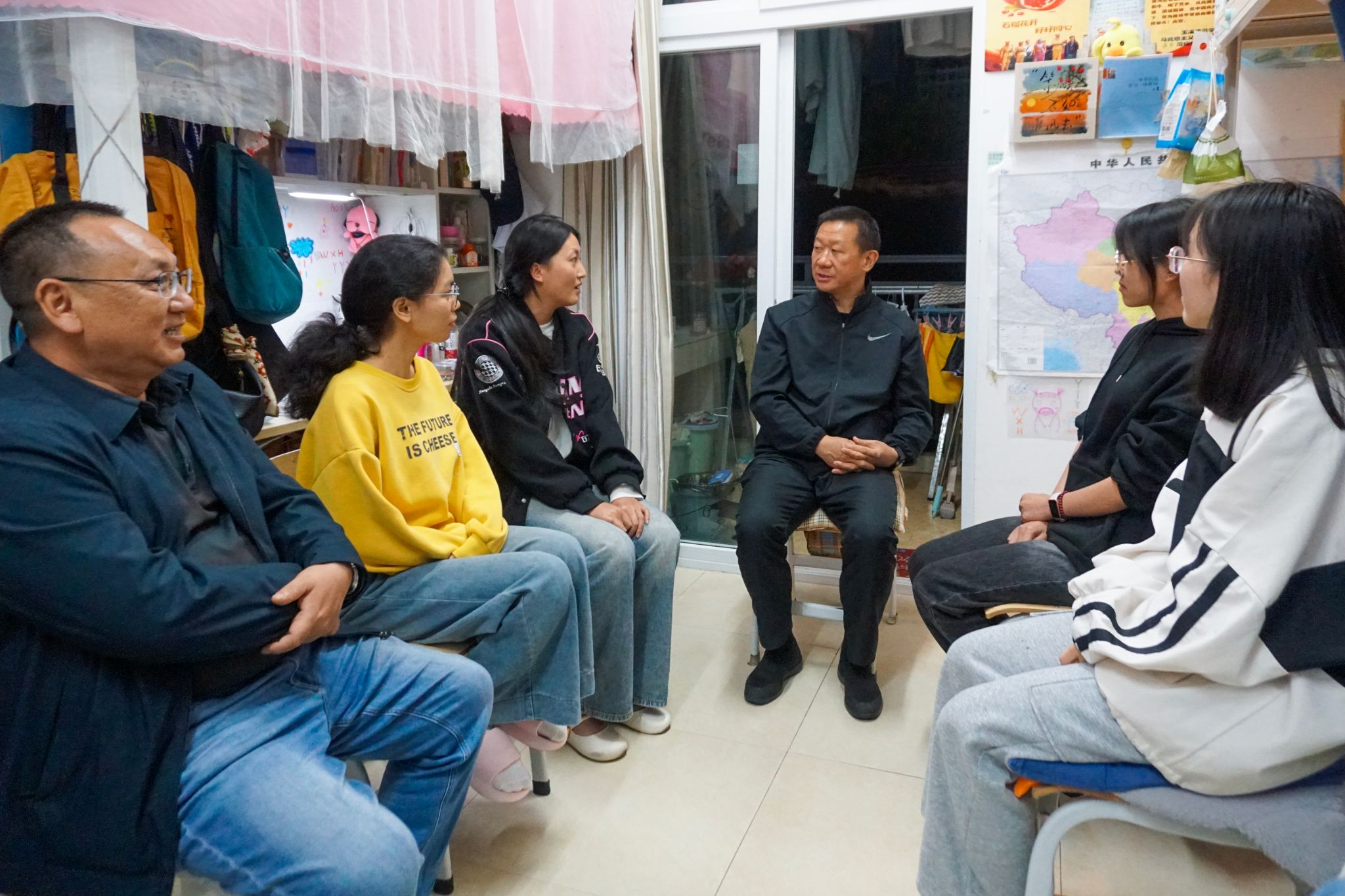 5月26日晚,校党委书记姜家雄深入学生社区,走访调研“一站式”学生社区建设情况和民族团结示范宿舍创建工作,与学生面对面交流,倾听成长心声,推动育人空间提质增效。校党委委员、统战部部长贾正林,学生工作部部长张春霞,马克思主义学院党委书记罗辉参加调研。