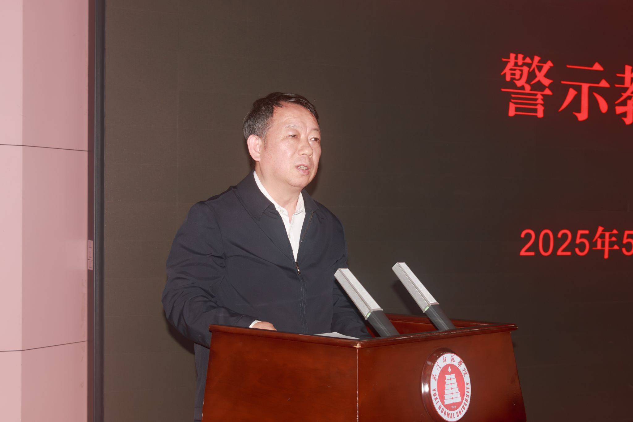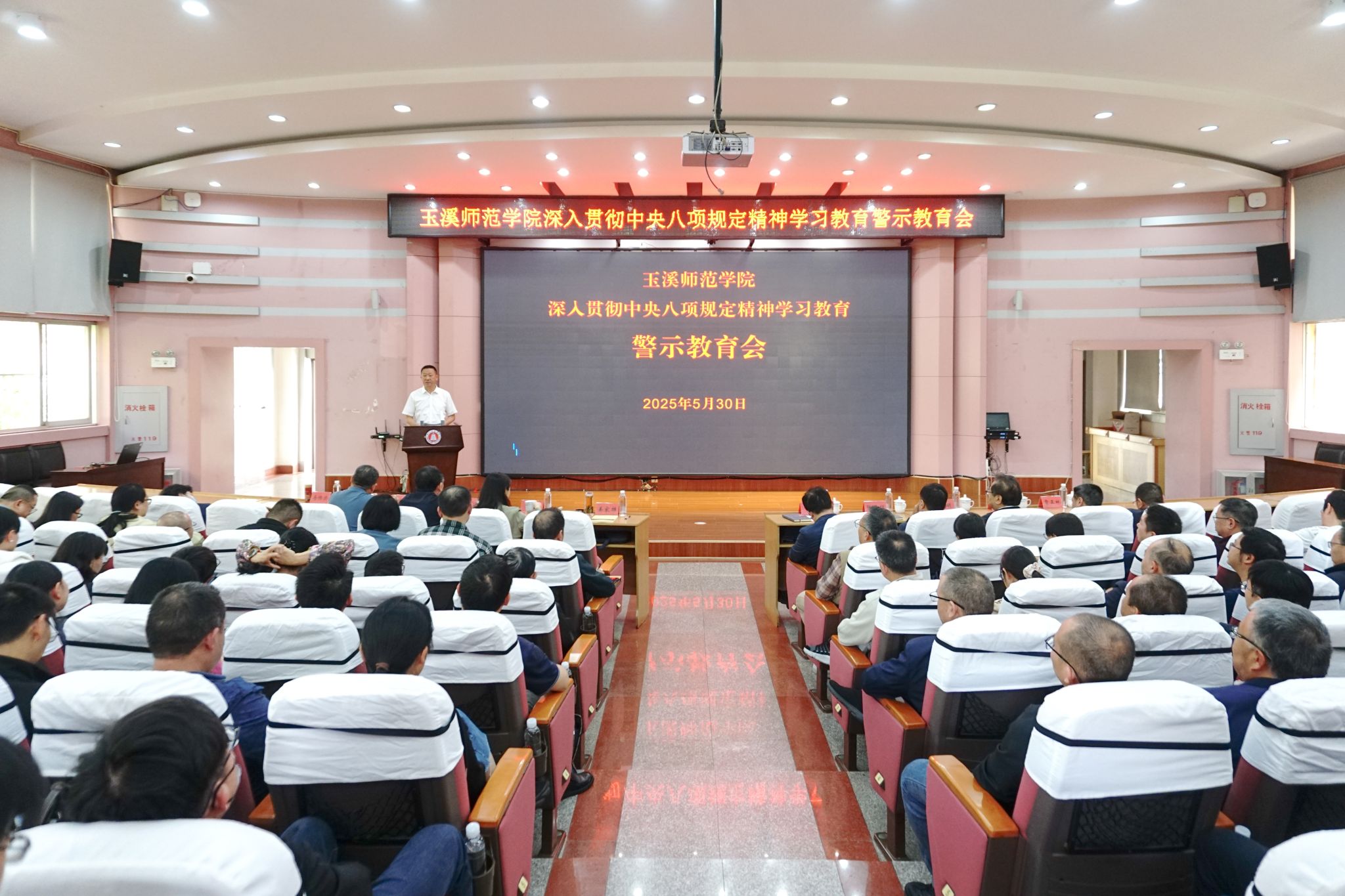 5月30日下午,玉溪师范学院召开深入贯彻中央八项规定精神学习教育警示教育会,深入学习领会习近平总书记关于加强党的作风建设的重要论述和重要指示批示精神,推动深入贯彻中央八项规定精神学习教育取得更大实效。校党委书记姜家雄主持会议并讲话。学校领导,校党委委员,校纪委委员,科级及以上领导干部,各二级党委纪检委员参加会议。