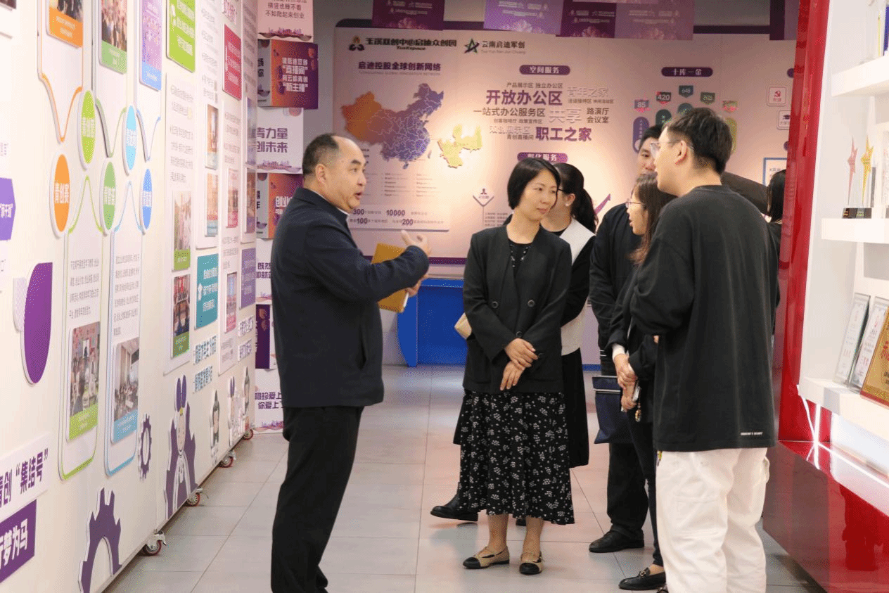 在玉溪市高新区科创中心主任郑瑜女士、玉溪启迪孵化器产业有限公司负责人王昱博陪同下,杨伟一行参观了企业的孵化园区、众创空间、项目展示区等,详细了解了企业的运营模式、孵化成果以及未来发展规划。座谈会上,参会人员就如何加强校政企合作,促进创新创业教育与实践相结合进行了深入探讨,云南德远会计师事务所、云南精卫鸿途科技有限公司(云南星瑞耀晨科技有限公司)、云南昊枫教育科技有限公司、云南紫腾科技等公司就公司业务与人才需求情况进行了介绍。