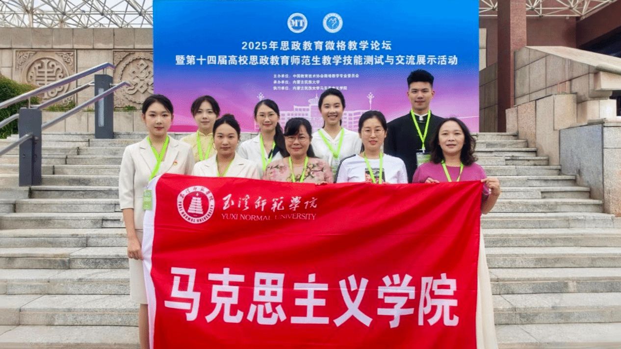 6月28日至30日,由中国教育技术协会微格教学专业委员会主办、内蒙古民族大学承办的2025年思政教育微格教学论坛暨第十四届高校思政教育师范生教学技能大赛在内蒙古通辽举行。玉溪师范学院马克思主义学院、教师教育学院各选派6名选手参赛,均全员获奖,其中一等奖3人、二等奖3人、三等奖5人、优秀奖1人。