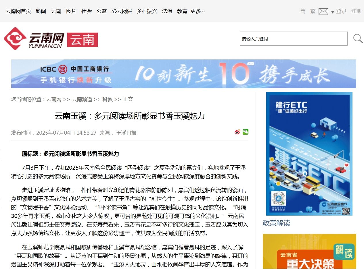 7月3日下午,参加2025年云南省全民阅读“四季阅读”之夏季活动的嘉宾们,实地参观了玉溪精心打造的多元阅读场所,沉浸式感受玉溪将深厚地方文化资源与全民阅读深度融合的创新实践。
