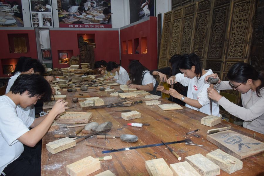 走进玉溪师范学院湄公河次区域民族民间文化传习馆,指导教师单平正带领着学生制作版面橡皮印章。这是学校云南民族民间美术的课程内容之一,作为针对大一、大二非艺术类学生开设的通识选修课,该课程已被纳入学校大美育课堂学分制。