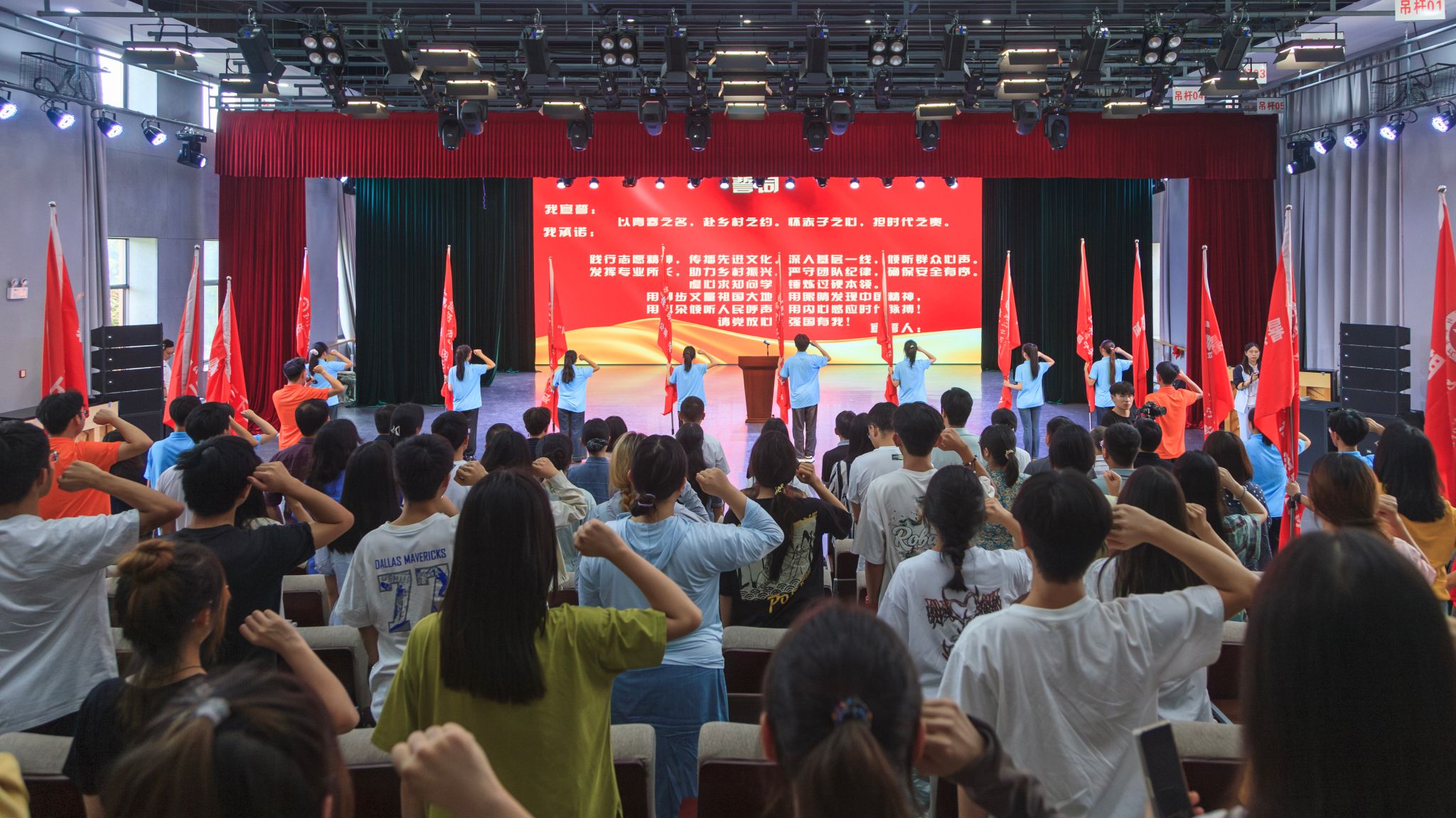 宣传部、学工部、教务处、语委办相关负责人,各学院党委副书记、团委书记,校团委全体人员,三下乡社会实践重点团队指导教师及实践团成员代表共130余人参加活动。出征仪式由校团委副书记(兼职)、社团管理部部长李峰宇主持。