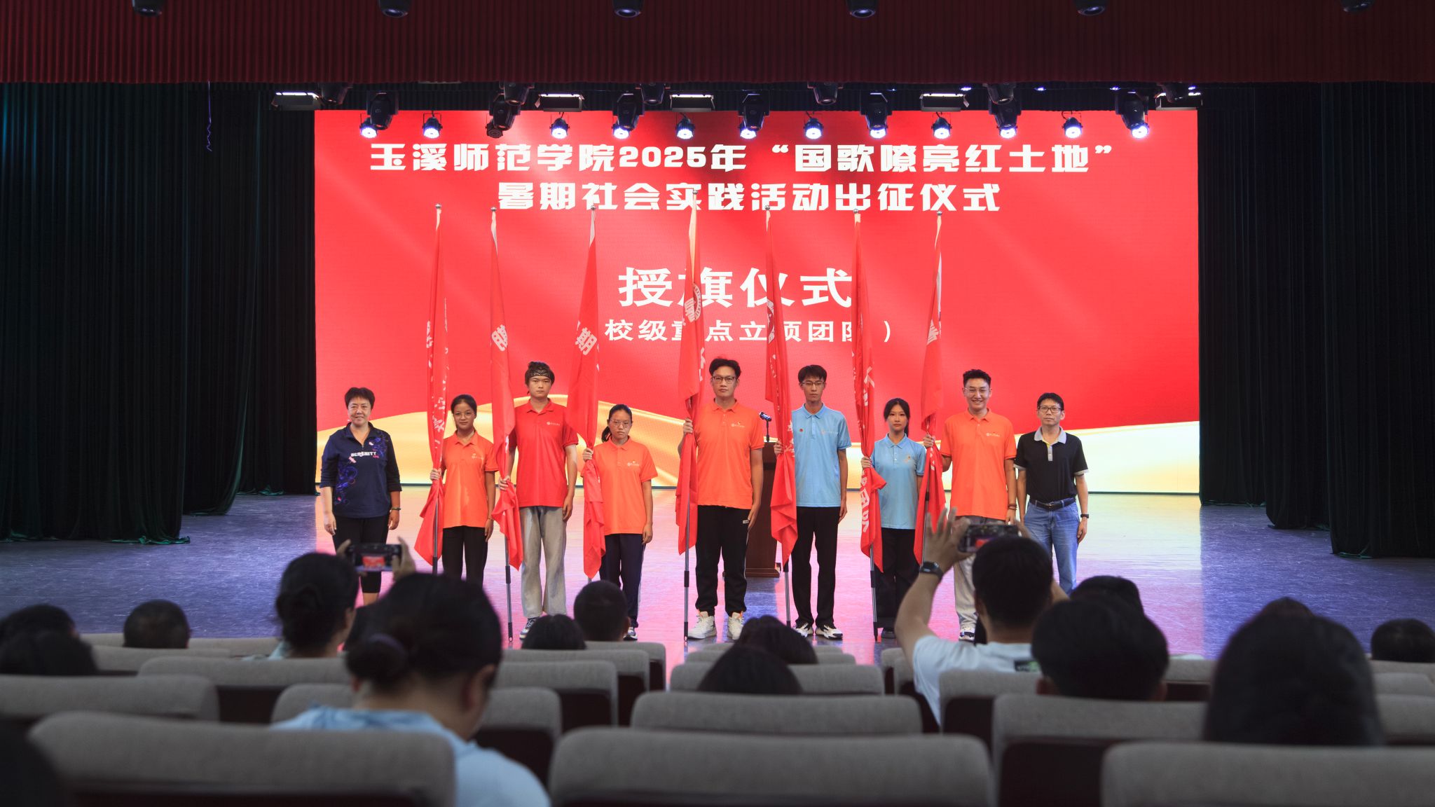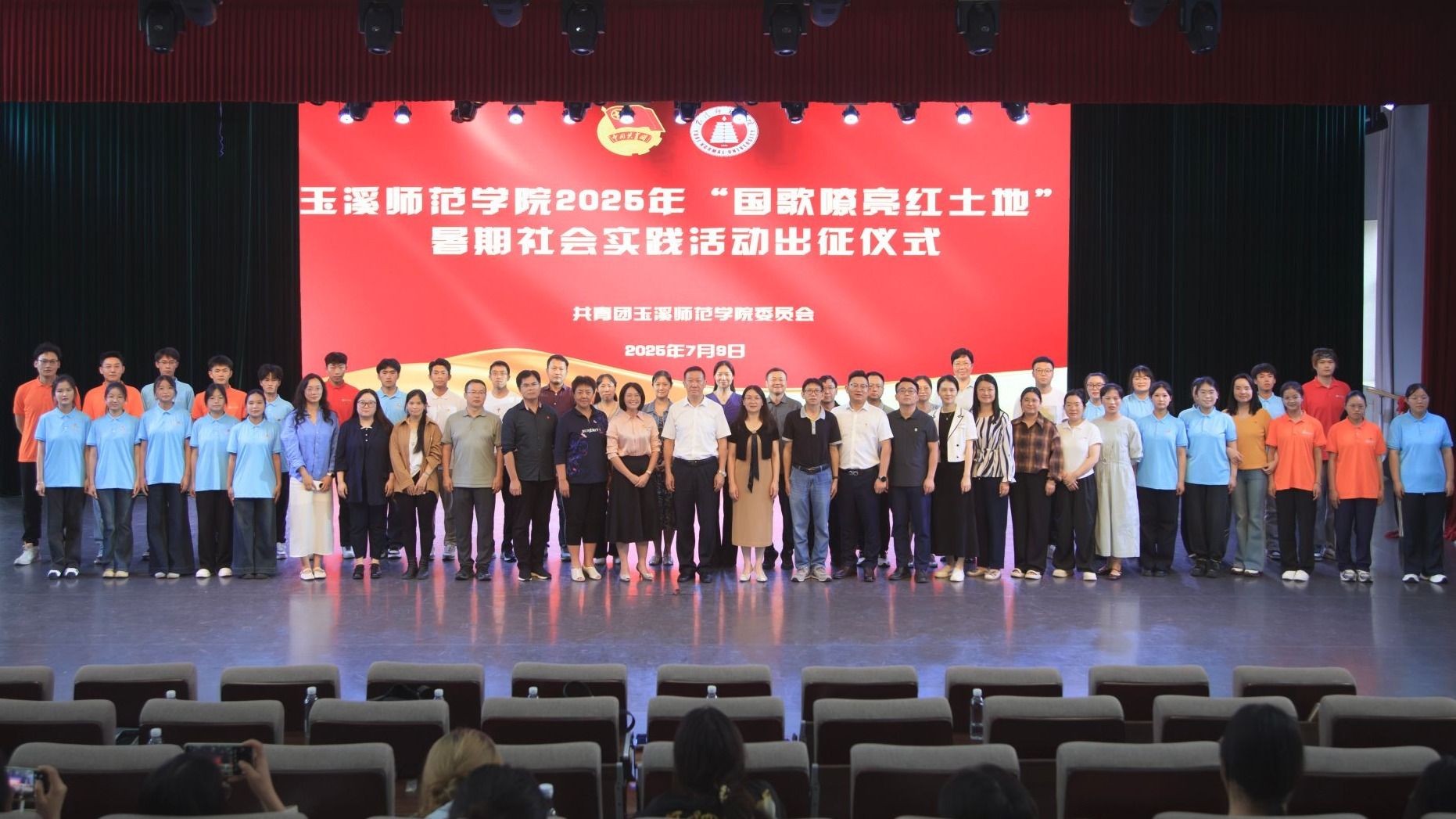 7月9日,玉溪师范学院2025年“国歌嘹亮红土地”暑期社会实践出征仪式在音乐学院舞蹈大楼实训剧场举行。学校党委书记姜家雄、副书记杨光出席,姜家雄作动员讲话。
