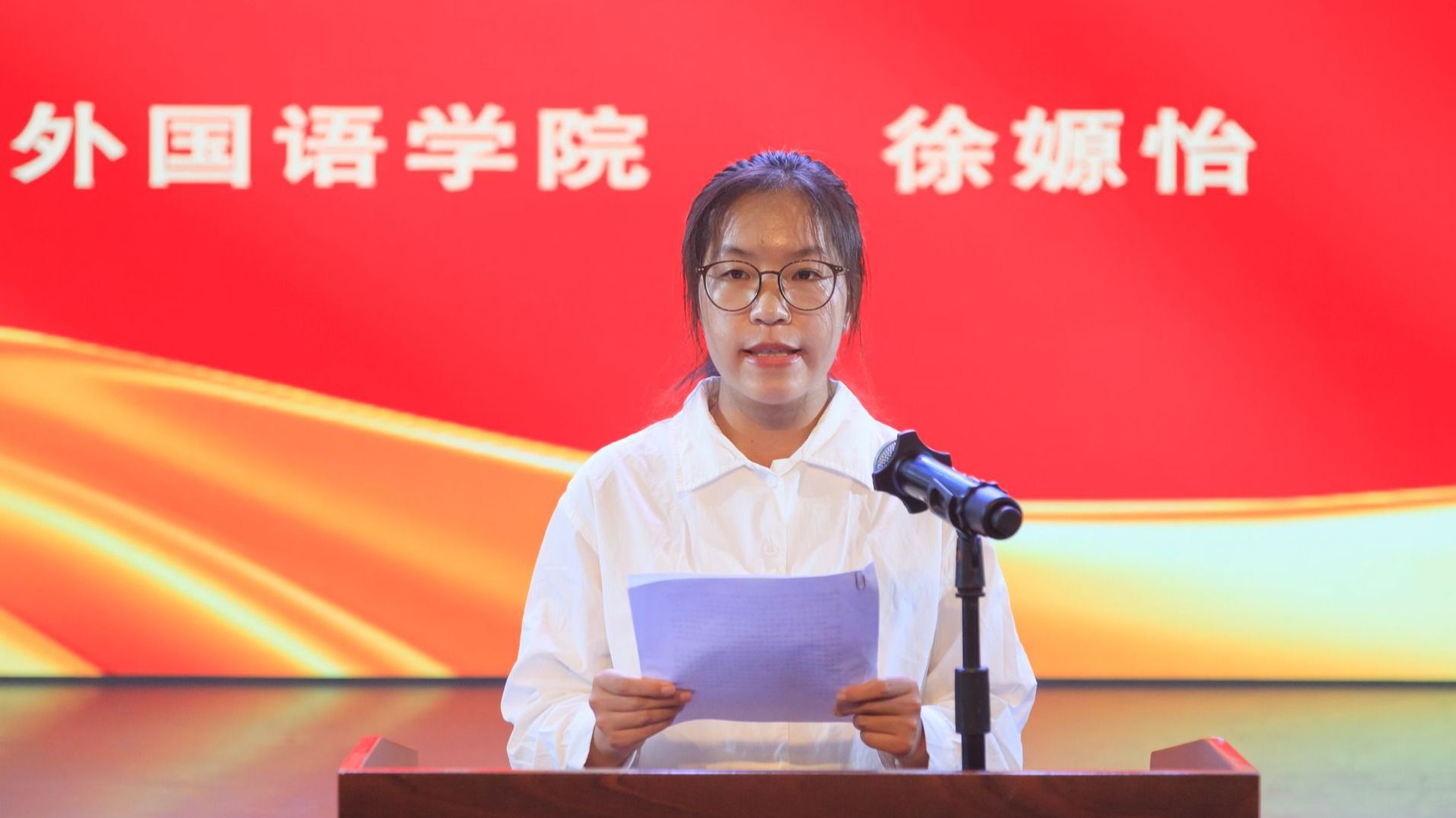 外国语学院徐嫄怡同学代表参加暑期社会实践的学生发言。