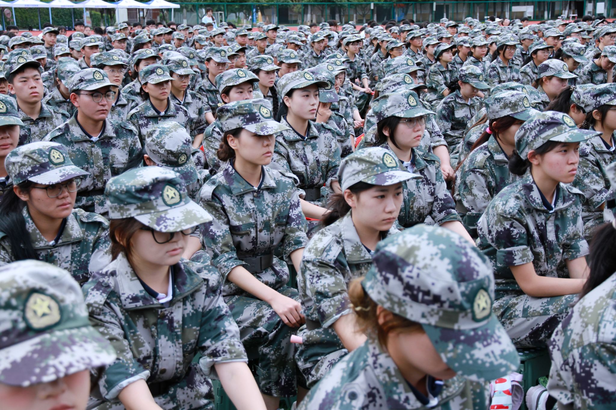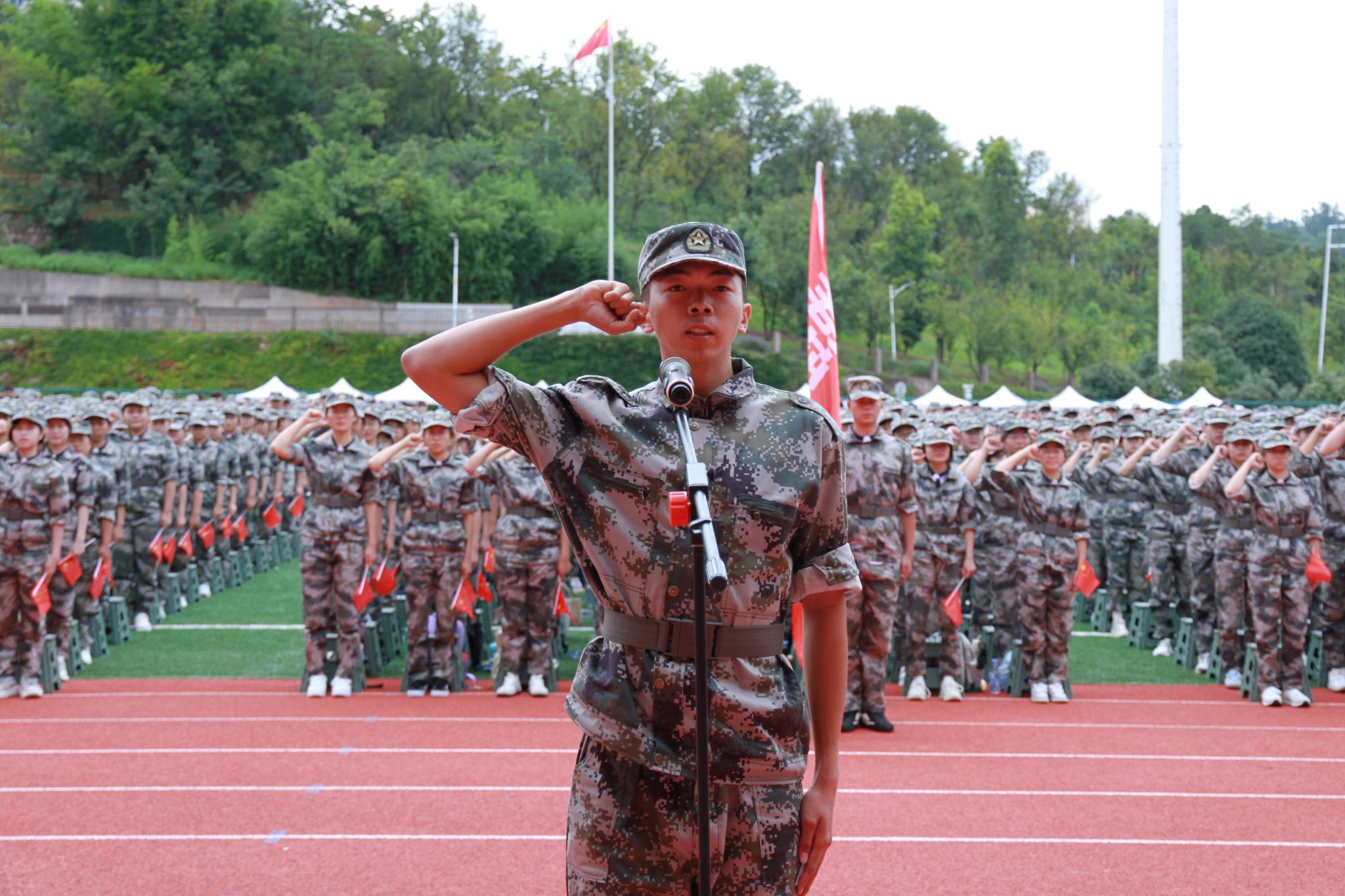 姜家雄为军训团授旗,参训学员庄严宣誓,嘹亮的军歌响起,军训动员大会被推上高潮。