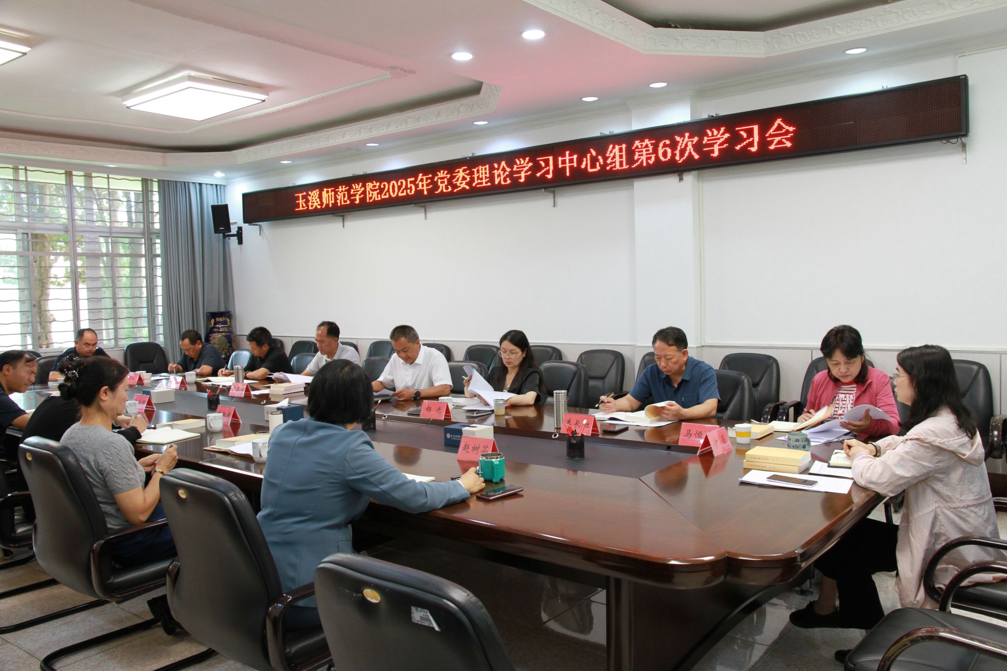 9月11日下午,玉溪师范学院召开2025年党委理论学习中心组第6次学习会,专题学习贯彻习近平总书记在纪念中国人民抗日战争暨世界反法西斯战争胜利80周年大会上的讲话精神、习近平总书记关于党的历史的重要论述,深入学习贯彻习近平总书记关于思想政治工作的重要论述。校党委副书记、校长段红云主持学习并作总结发言。学校党委理论学习中心组全体成员、副校长杨伟,党委工作部门主要负责人参加学习。