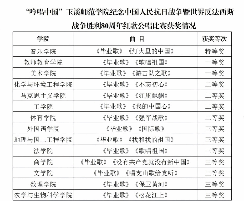 本次大赛的顺利举办为2025级新生上了一堂生动而深刻的爱国主义教育大课。站在新的历史起点上,学校将以此次红歌合唱为契机,继续深化爱国主义教育,传承红色基因、赓续红色血脉,引导广大玉师青年在铿锵旋律中坚定理想信念,于历史回响中汲取奋进力量,努力成长为堪当民族复兴重任的时代新人。