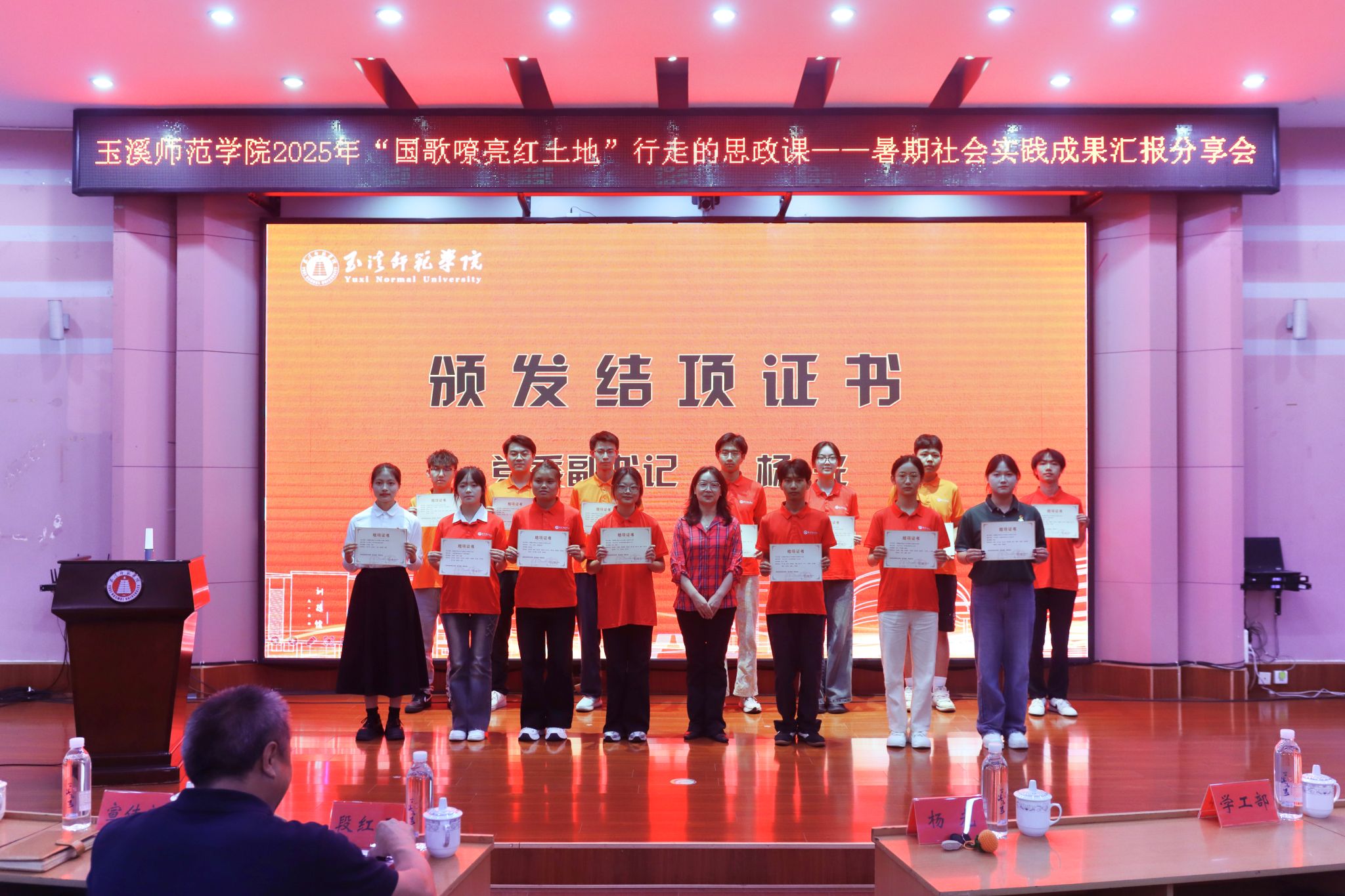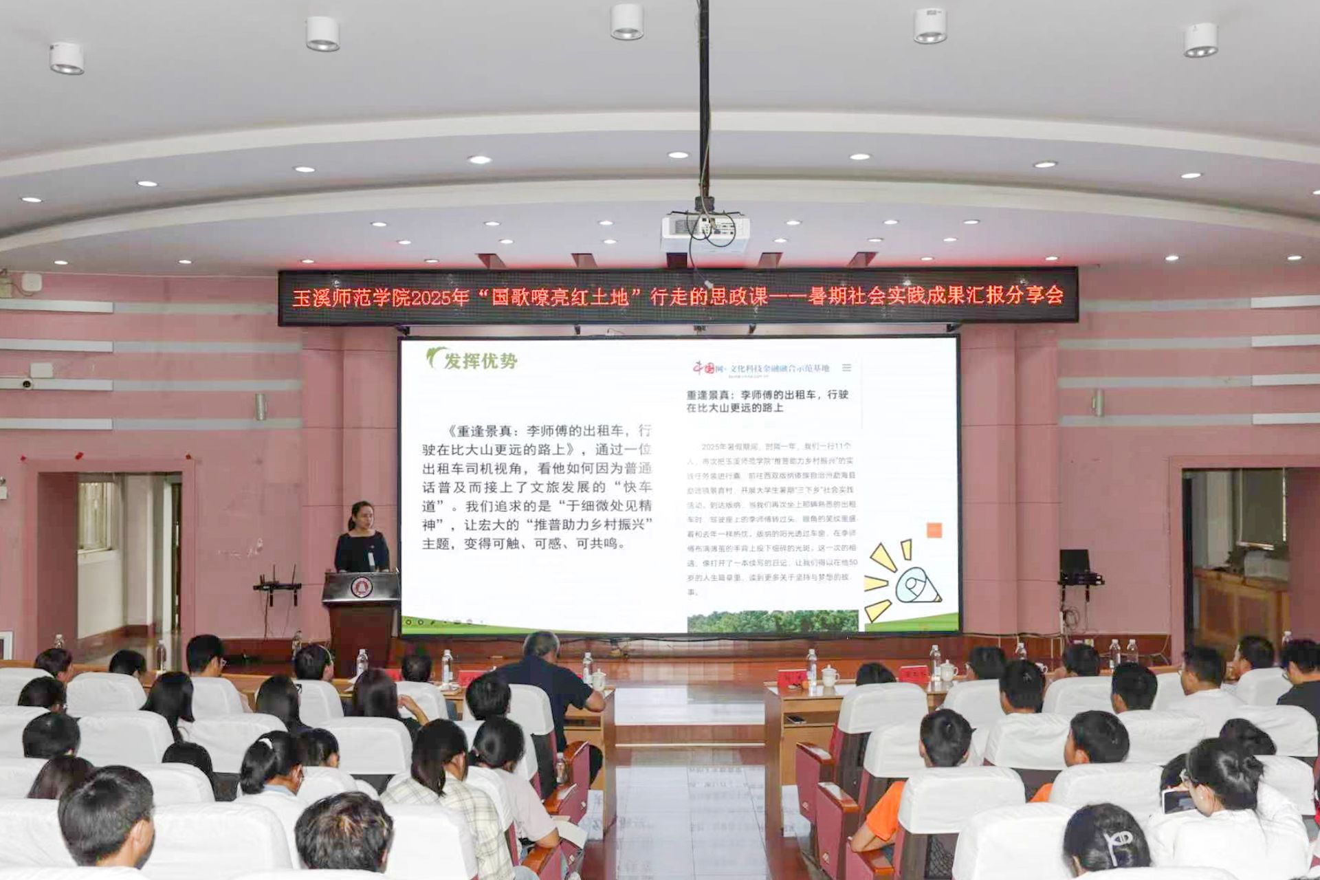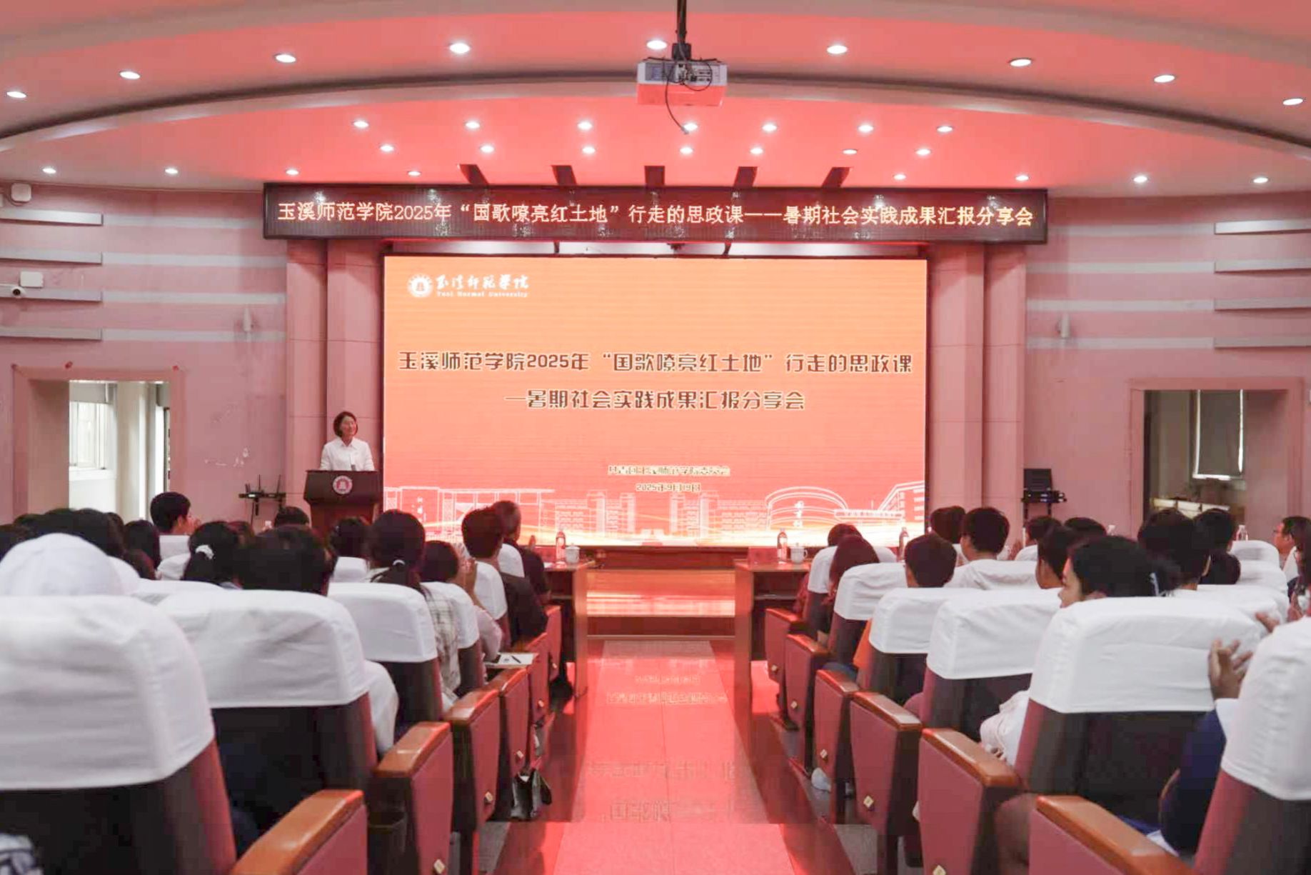 为全面总结2025年暑期“三下乡”社会实践育人成果,分享实践经验,引导广大青年学子在社会实践中“受教育、长才干、作贡献”,9月19日,玉溪师范学院在科学讲堂举行2025年“国歌嘹亮红土地”行走的思政课——暑期社会实践成果汇报分享会。校长段红云,校党委副书记杨光出席活动。宣传部、学工部、教务处、语委办相关负责人,二级学院党委副书记、团委书记,各实践团代表及2025级新生代表共240人参加分享会。