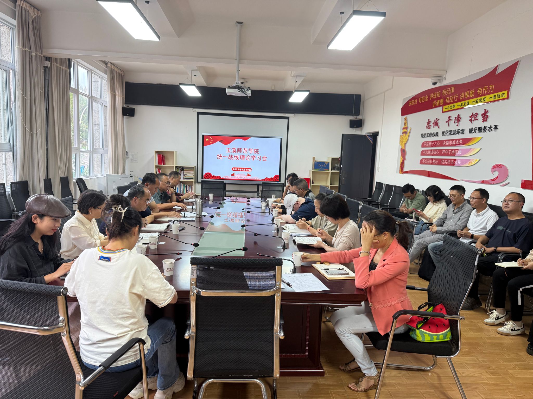 9月19日下午,玉溪师范学院统一战线理论学习会在二教316会议室举行。学校党委副书记张亚辉,副校长杨伟出席会议,各民主党派基层组织负责人、知联会和留联会领导班子成员、无党派人士、党外知识分子代表及统战部全体人员参加学习。学习活动由张亚辉主持。