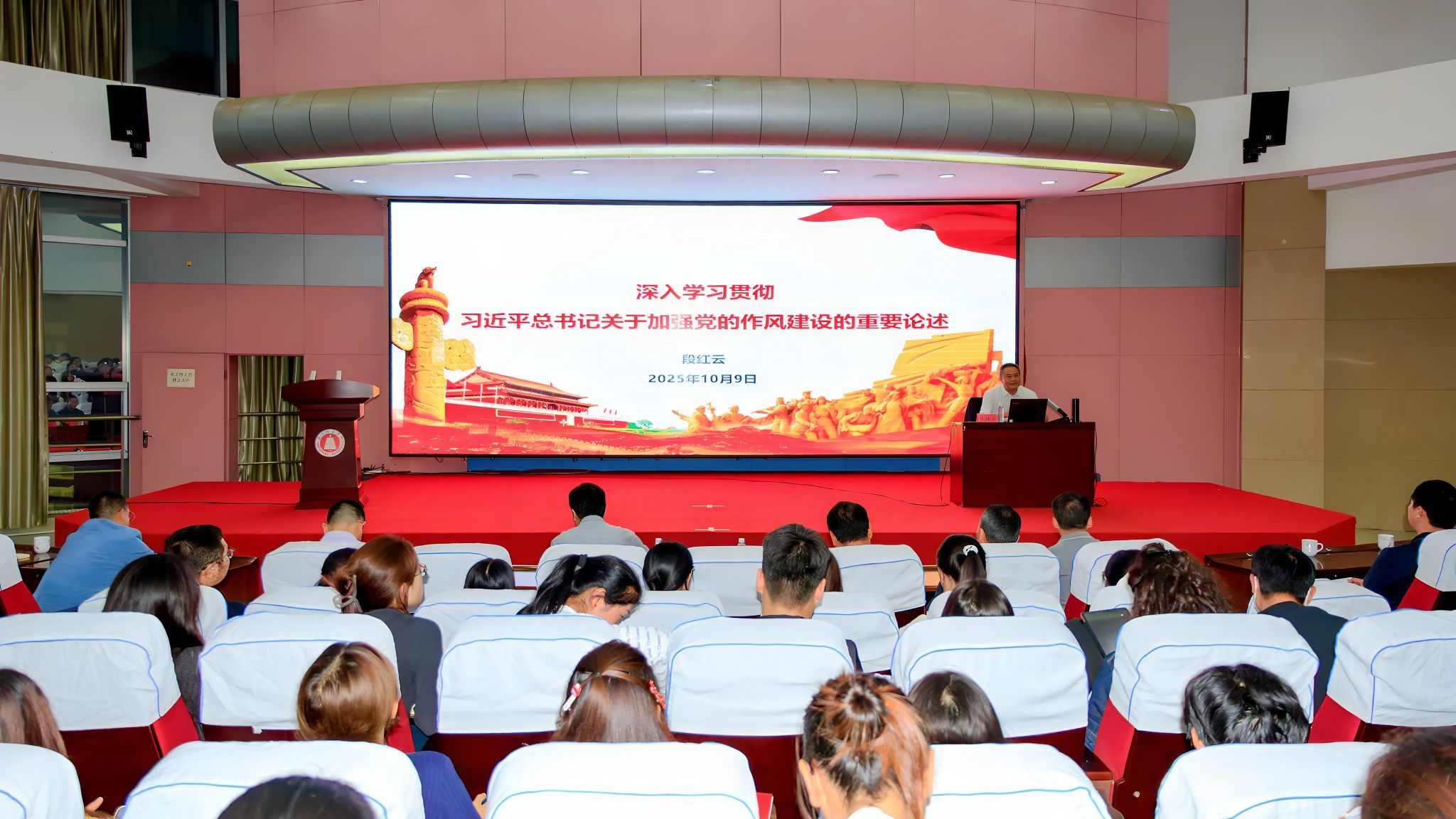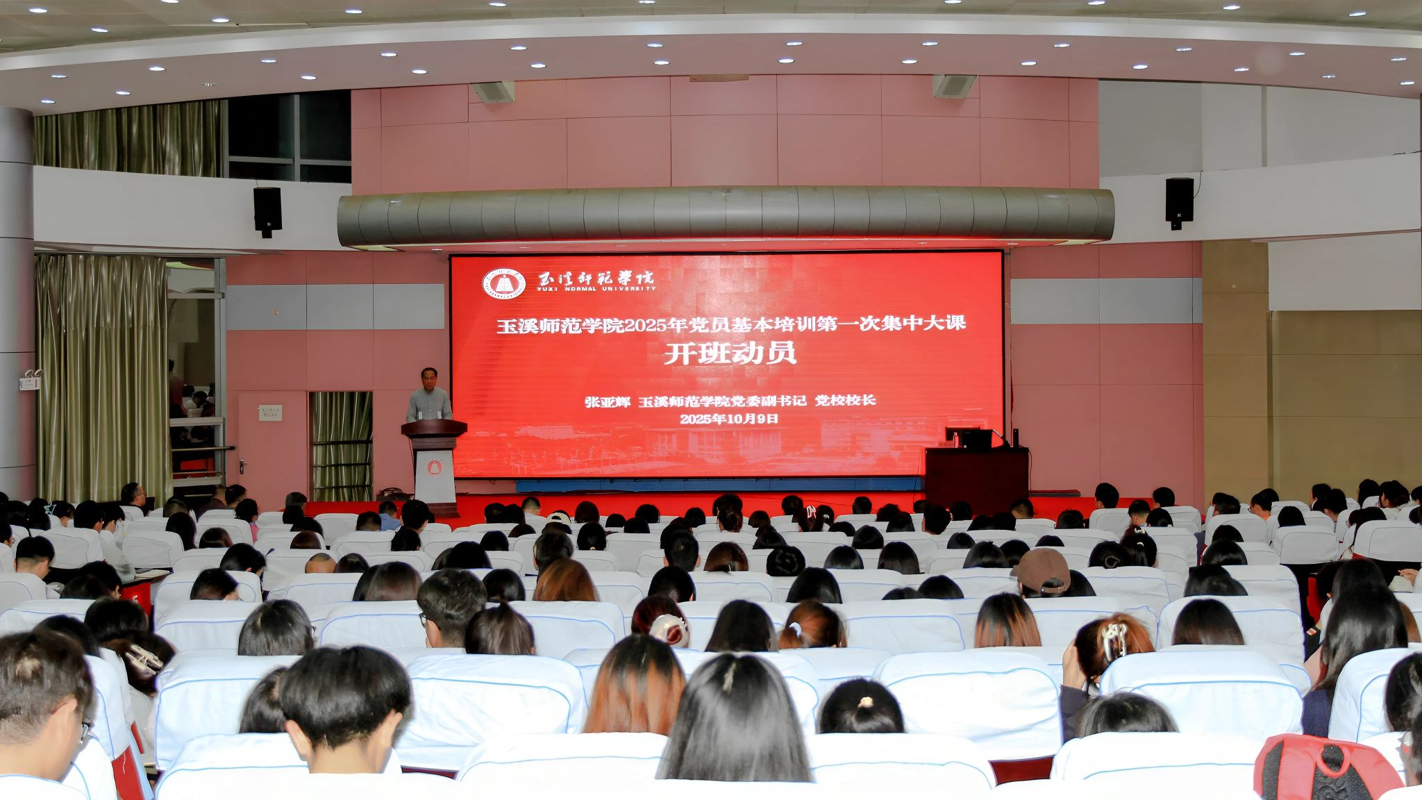 10月9日,玉溪师范学院组织开展2025年党员基本培训第一次集中大课,学校党委副书记、校长段红云作《深入学习贯彻习近平总书记关于加强党的作风建设的重要论述》专题辅导。培训由学校党委副书记、党校校长张亚辉主持。