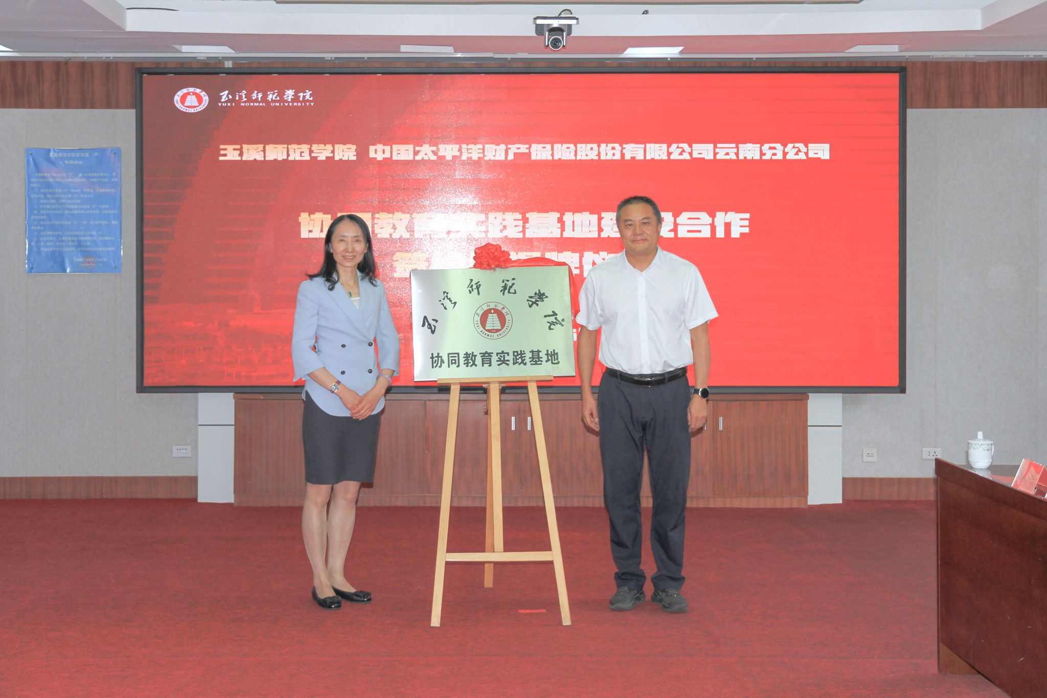 段红云、李鸿共同为“玉溪师范学院—中国太平洋财产保险股份有限公司云南分公司协同教育实践基地”揭牌。