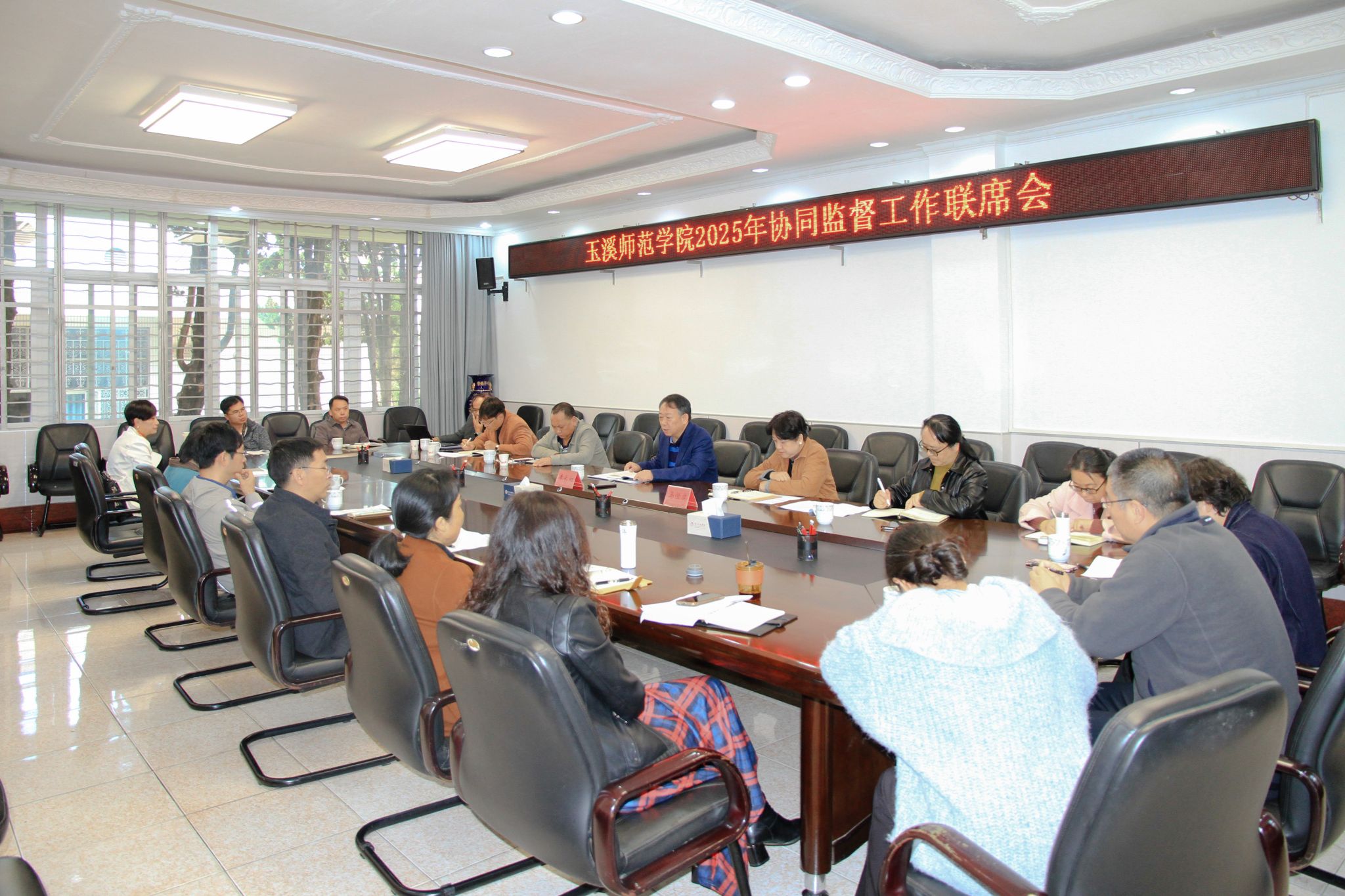 11月11日,玉溪师范学院纪委、监察专员办公室组织召开2025年协同监督工作联席会议,落实《玉溪师范学院纪委协同监督制度》,听取相关职能部门监督情况汇报,充分发挥各协同单位的职能监督作用,构建整体联动、高效协同“大监督”格局。校纪委书记、监察专员李长虹主持会议并讲话。
