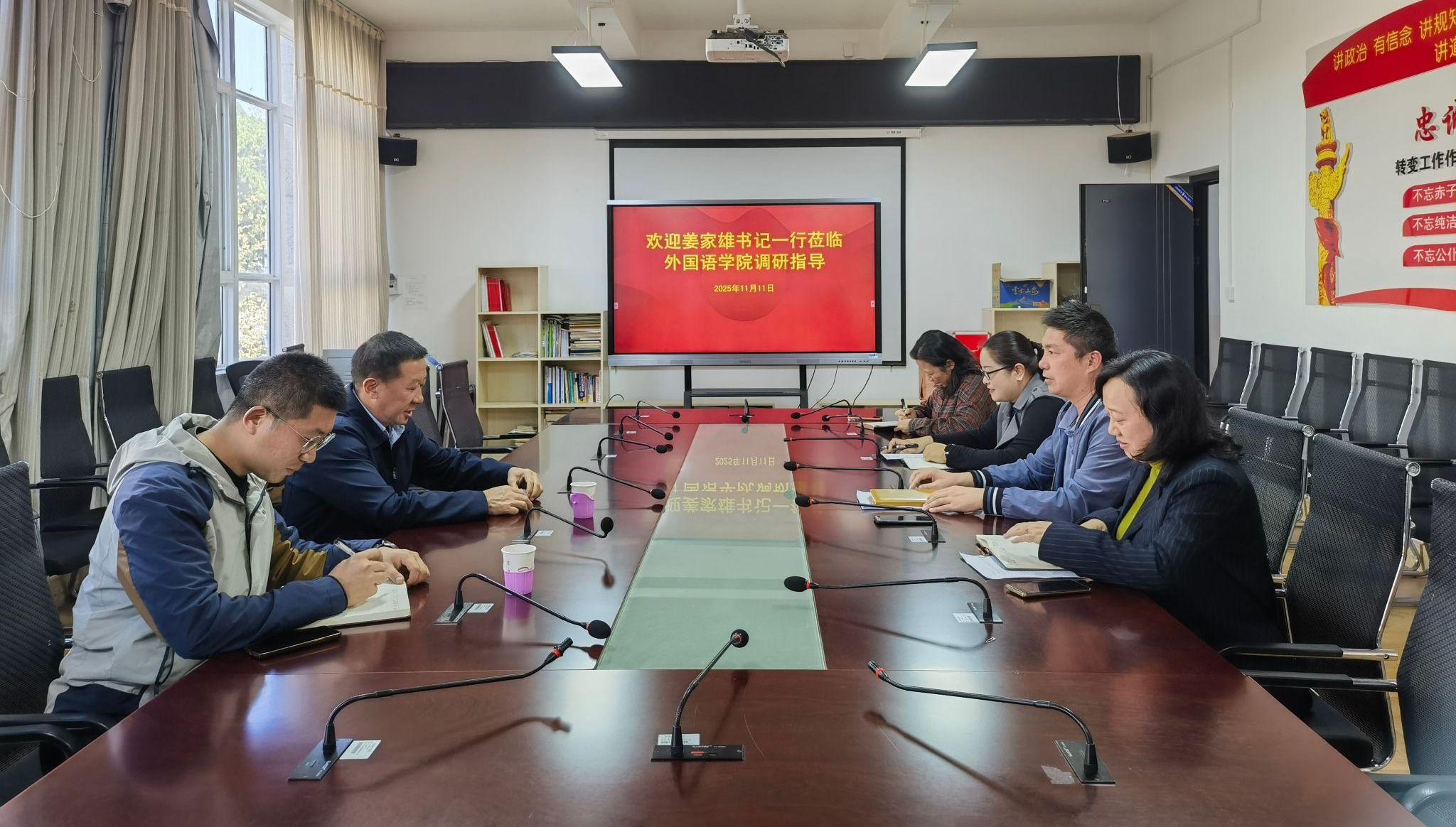 11月11日下午,学校党委书记姜家雄深入外国语学院开展随机调研,实地了解学院发展情况,并与学院领导班子成员座谈交流。