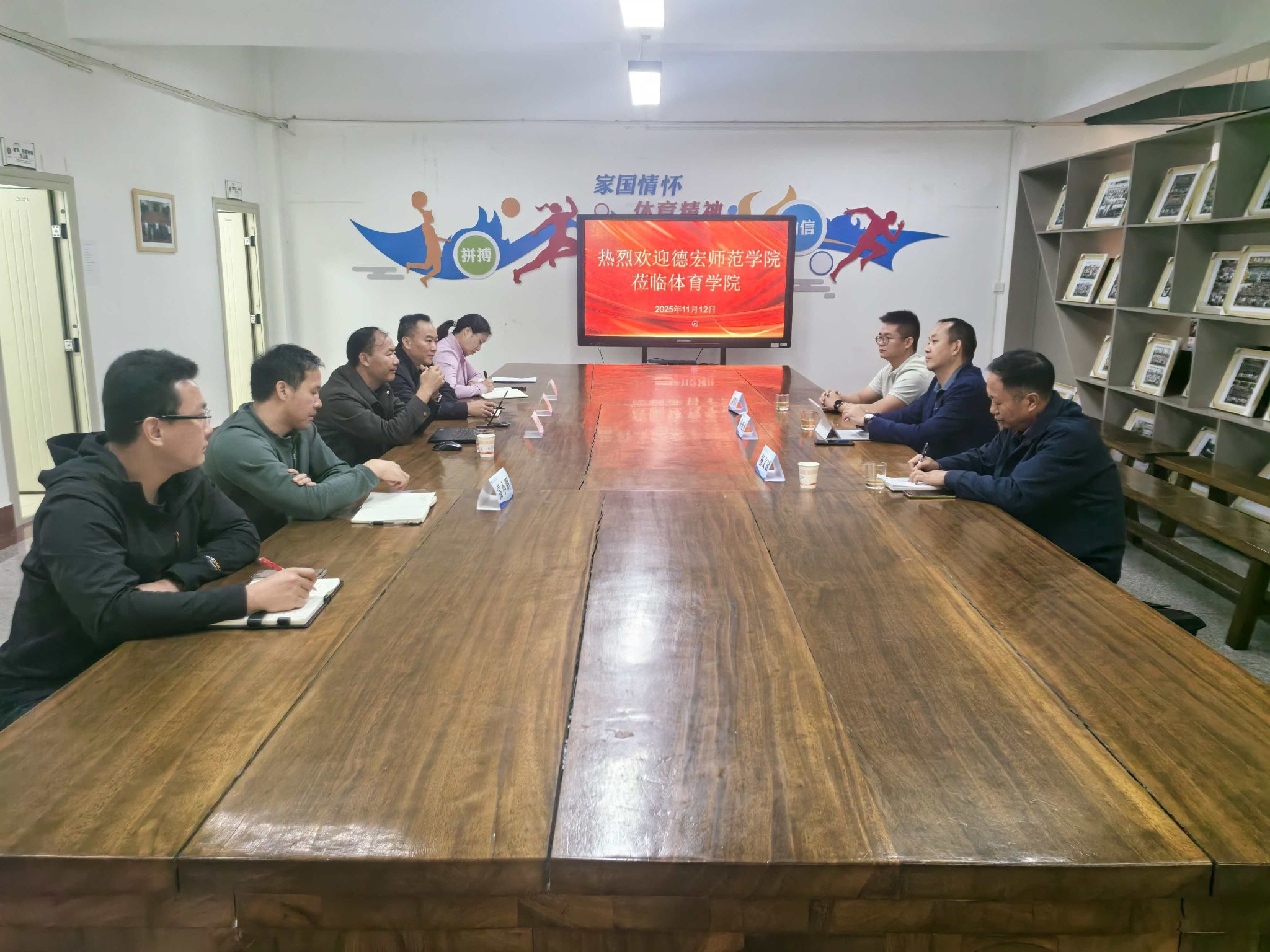 陈艳松院长对我校体育学院近年来取得的建设成效表示高度赞赏。他表示,此次调研旨在搭建校际协同发展的沟通桥梁,通过经验分享与思路碰撞,共同探讨并解决德宏师范学院体育学院在发展过程中遇到的难点与堵点。