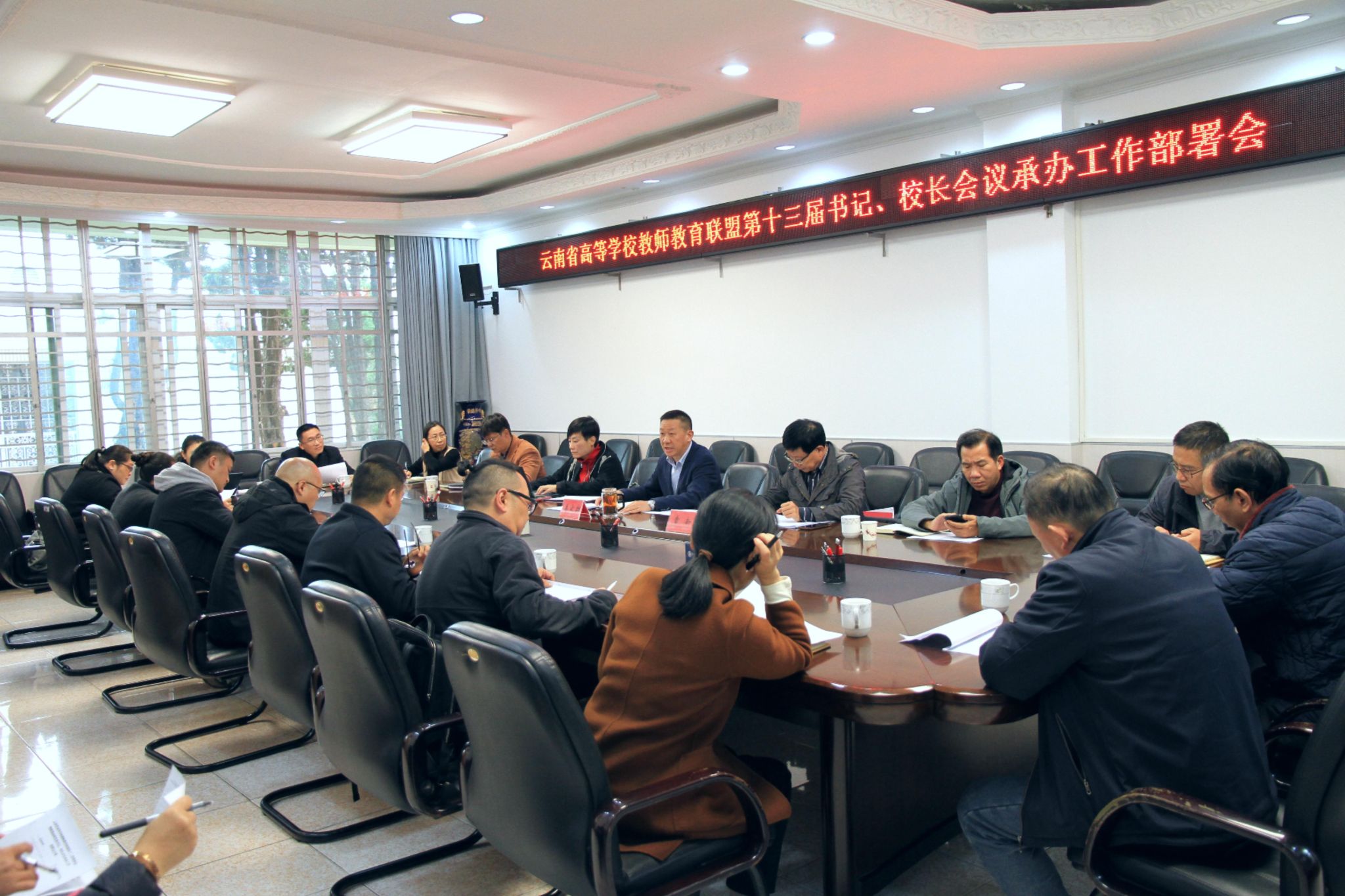 11月17日,玉溪师范学院召开专题工作部署会,就承办云南省高等学校教师教育联盟第十三次理事会暨联盟高校党委书记、校长会议进行动员安排。校党委书记姜家雄主持会议并讲话,副校长章新出席会议并就具体承办工作进行部署。学校相关职能部门负责人、各二级学院院长参加会议。