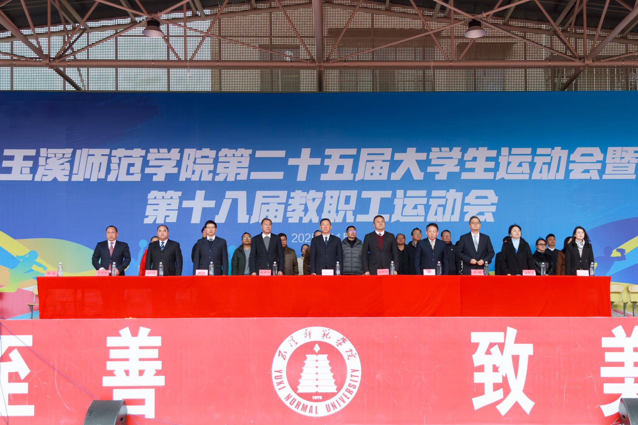 旌旗猎猎迎风展,鼓乐声声励征程。11月19日上午,玉溪师范学院运动场彩旗飘扬、人声鼎沸,第二十五届大学生运动会暨第十八届教职工运动会开幕式举行。学校党委书记姜家雄、校长段红云等校领导,各职能部门、学院负责人出席开幕式。开幕式由校党委委员、副校长、体育运动委员会主任李涛主持。