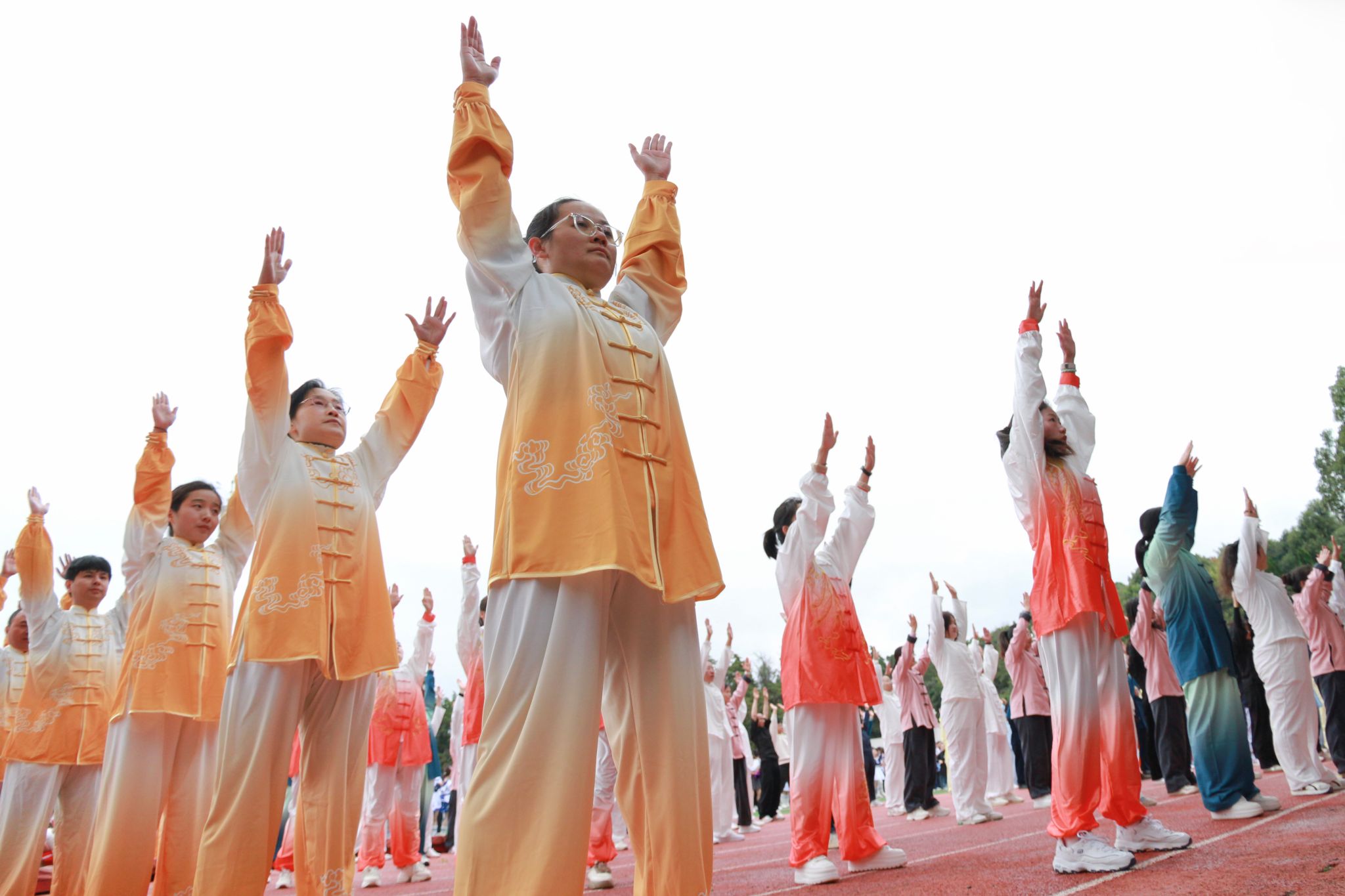 “薪火相传”文体展演环节成为开幕式的一大亮点,体育精神在三代人的演绎中完成生动接力。教职工团队带来的八段锦表演动作舒展、气韵沉稳,展现中华传统养生文化的魅力。