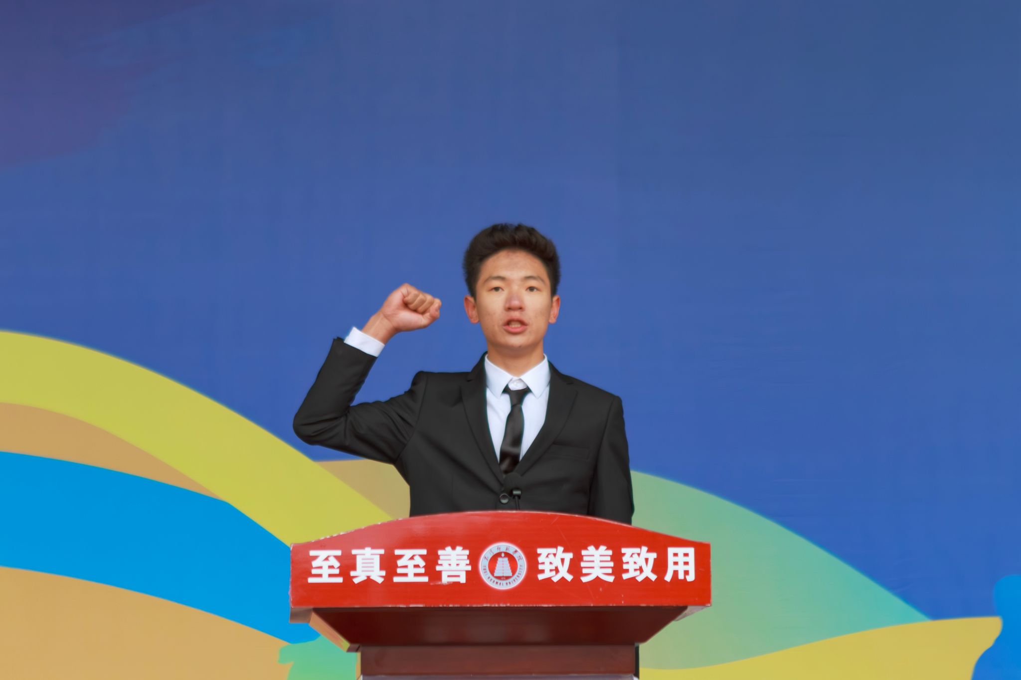 工学院2025级陈奕锴同学代表运动员宣誓,表示将尊重对手、勇于拼搏。
